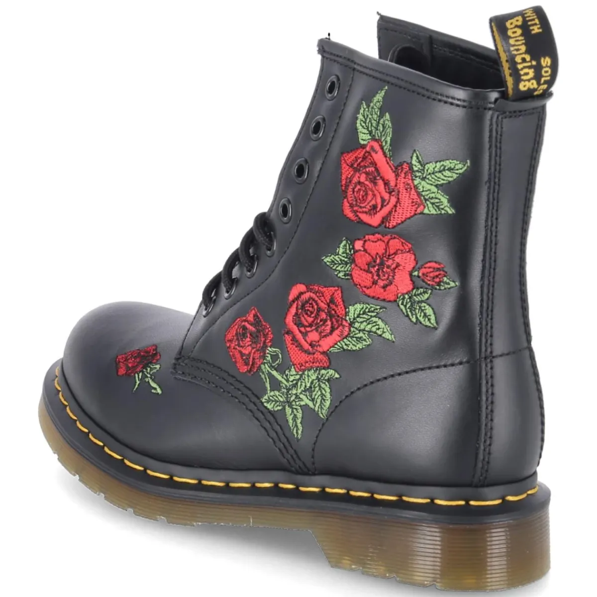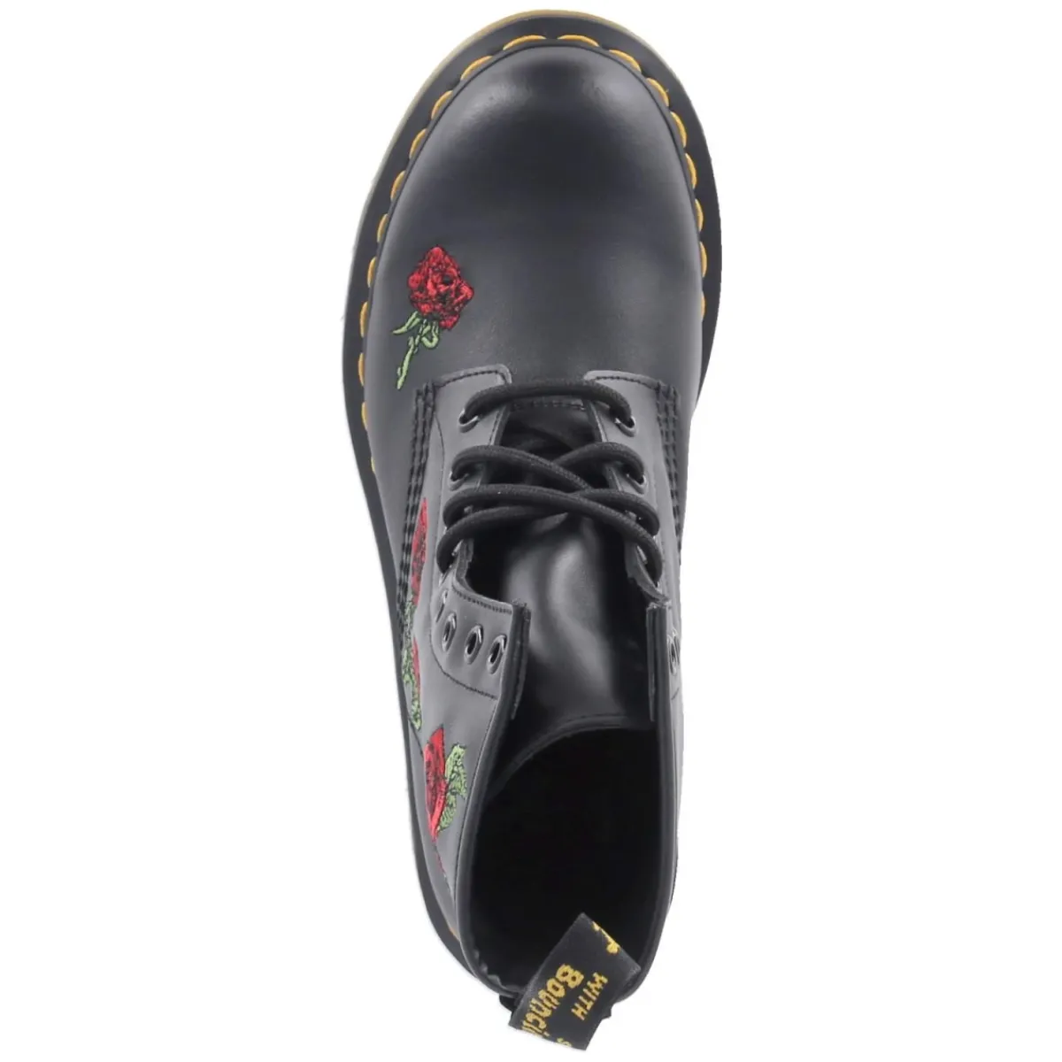 Der Dr. Martens Schnürboots 1460 VONDA präsentiert die ikonische 8-Loch-Silhouette im femininen Update: Seitlich gestickte Rosen verleihen dem klassischen Combat-Design eine besondere Note. Glattes, langlebiges Echtleder formt den Schaft, die runde Spitze und die verstärkte Ferse sorgen für Struktur und Halt. Die flexible, griffige Laufsohle und der 3 cm hohe Blockabsatz bringen Stabilität auf urbanem Terrain, während das gepolsterte, herausnehmbare Fußbett mit Lederdecksohle angenehmen Komfort schenkt. Typische Markendetails wie Rahmennaht und Zugschlaufe runden den Look ab. Dank normal ausfallender Passform lässt sich die Größe unkompliziert wählen, die Schnürung ermöglicht individuelles Anpassen. Ein Boot, der mühelos zwischen Rock-Attitüde und zeitloser Eleganz pendelt. Modetipp: Kontraste spielen – zu zarten Midi-Kleidern oder Satinslip-Skirts und einer cropped Bikerjacke entsteht ein spannender Bruch mit viel Präsenz.
