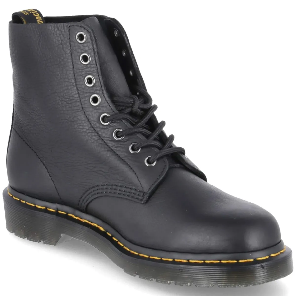 Der Schnürboot PASCAL von Dr. Martens interpretiert das unverwechselbare Erbe der Marke mit einem klaren, modernen Auftritt. Glattes, robustes Echtleder formt die ikonische Silhouette mit runder Kappe, während der 3 cm hohe Blockabsatz und die starke, rutschfeste Profilsohle für zuverlässigen Halt auf nassem Asphalt sorgen. Die Lederdecksohle unterstützt ein angenehmes Fußklima, die verstärkte Ferse erhöht die Stabilität im Alltag. Das klassische Design in Schwarz fügt sich mühelos in Business- wie Freizeitlooks ein, und die markentypische Anziehlasche mit Label erleichtert den Einstieg. Der schmalere Fit unterstreicht die schlanke Linie und lässt den Boot besonders smart wirken. Modetipp: Besonders stimmig zu schmal geschnittener Raw-Denim, einem weißen Oxford-Hemd und einem dunklen Wollmantel; ein tonales Ledergürtel-Set komplettiert den cleanen Auftritt.