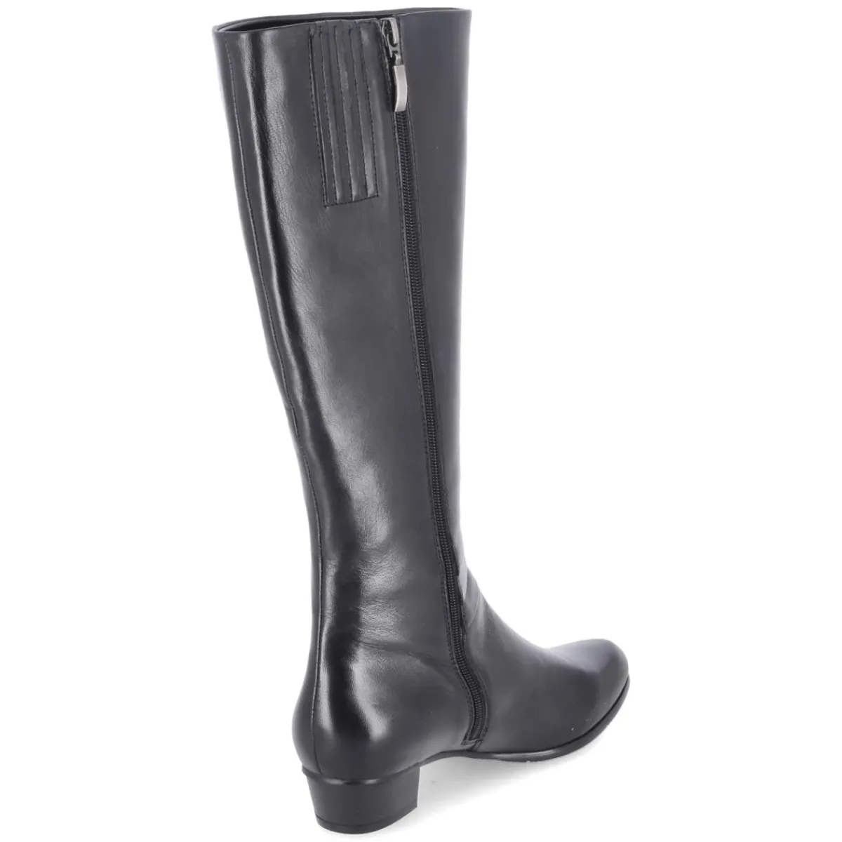 Der Damenstiefel von Kaerlek verkörpert zeitlose Eleganz und angenehmen Tragekomfort. Glattes, langlebiges Echtleder prägt die klare Linienführung, während dezente Falten über dem Spann und an der äußeren Ferse dem Design eine raffinierte Note verleihen. Der 3,5 cm hohe Blockabsatz sorgt für stabilen Halt im Alltag, die runde Schuhspitze wirkt klassisch und bietet Zehenfreiheit. Ein Reißverschluss erleichtert den Einstieg, unterstützt vom Stretcheinsatz am oberen Schaft, der sich dem Bein anschmiegt. Das leichte Futter wärmt an kühlen Tagen, die textile Decksohle und ein leicht gepolstertes Fußbett erhöhen den Komfort. Mit einer Schafthöhe von ca. 39 cm und einem Umfang von ca. 38 cm sowie normaler Passform ist eine stimmige Silhouette garantiert. Modetipp: Zu Strickkleid, Wollmantel und blickdichter Strumpfhose entsteht ein eleganter City-Look.