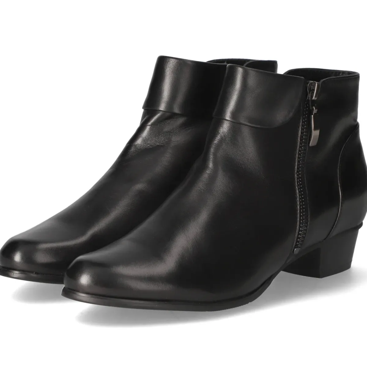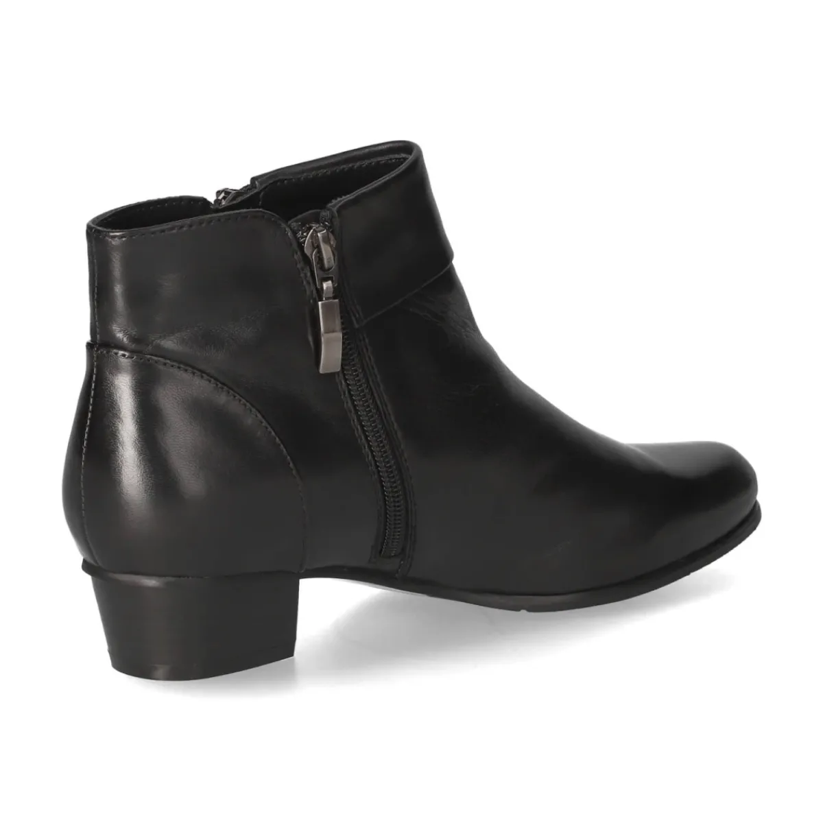 Die Kaerlek Stiefeletten setzen auf zeitlose Eleganz in tiefem Schwarz und überzeugen mit einem Obermaterial aus langlebigem Echtleder. Das weiche Textilfutter mit Warmfutter-Effekt sorgt selbst an kühlen Tagen für ein angenehmes Klima, während die Decksohle aus Leder-Textil den Fuß atmungsaktiv umschließt. Ein rund geformter Leisten schafft Zehenfreiheit, das leicht gepolsterte Fußbett erhöht den Komfort im Alltag. Der seitliche Reißverschluss ermöglicht einen bequemen Einstieg, die verstärkte Ferse gibt Stabilität, und die flexible, rutschhemmende Profilsohle bietet sicheren Halt auf verschiedenem Untergrund. Mit stabilem 3‑cm-Absatz und normaler Passform wird ein zuverlässiger Begleiter für viele Anlässe geboten. Modetipp: Besonders stimmig wirken die Stiefeletten zu geradem Wollmantel und Cropped-Jeans, ergänzt um eine feine Lederhandtasche für einen cleanen City-Look.