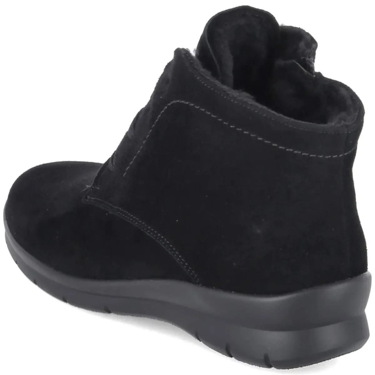 Die Stiefeletten XENIA von Semler verbinden Komfort und zeitlosen Stil. Das schwarze Rauleder mit samtiger Oberfläche verleiht dem Modell eine edle Tiefe, während die runde Schuhspitze und das geringe Gewicht für entspannte Schritte im Alltag stehen. Innen sorgt ein weiches Warmfutter für behagliche Temperaturen an kalten Tagen. Praktisch und elegant zugleich ist die Kombination aus Schnürung und seitlichem Reißverschluss, die das An- und Ausziehen besonders bequem macht. Das Wechselfußbett ermöglicht individuelles Anpassen oder das Tragen eigener Einlagen, die textile Decksohle ergänzt den sanften Tragekomfort. Dank normal ausfallender Passform gelingt die Größenwahl unkompliziert. Modetipp: Der monochrome Stil der XENIA harmoniert hervorragend mit einem wolligen Mantel in Kamel oder Grau und cropped Denim; ein schwarzer Lederbeutel rundet den cleanen Look smart ab.