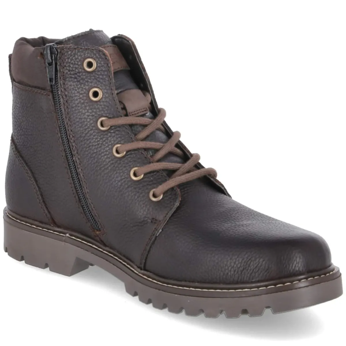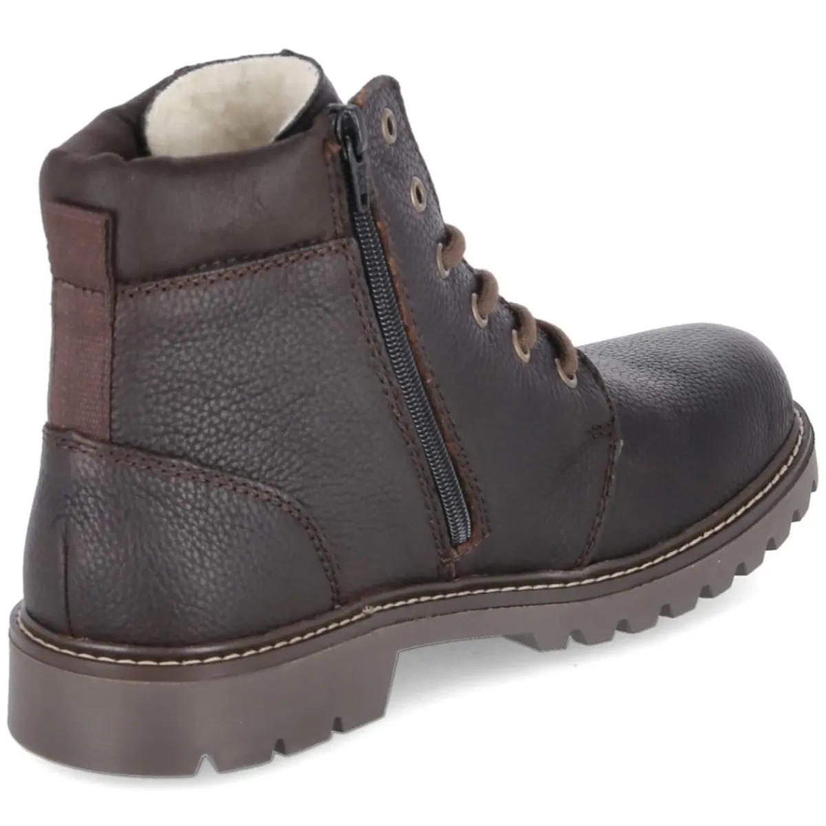 Dieser Herren-Winterboot von Rieker setzt auf zuverlässige Performance und zeitlosen Look. Das braune Glattleder mit markanten Ziernähten trifft auf eine rund gearbeitete Kappe und einen stabilen 3-cm-Blockabsatz. Innen sorgt ein warmes Wollfutter zusammen mit einer weich gepolsterten Textildecksohle und einem komfortablen, gepolsterten Einstieg für behagliches Tragegefühl an kalten Tagen. Die Ausstattung ist wasserfest und wasserabweisend ausgeführt, zugleich atmungsaktiv – ideal bei Schneematsch und wechselhaftem Wetter. Schnürsenkel und Reißverschluss, ergänzt um einen zusätzlichen Zipper, ermöglichen leichtes An- und Ausziehen sowie passgenauen Halt. Der verstärkte Fersenbereich und die robuste, vernähte und rutschhemmende Profillaufsohle bieten Trittsicherheit auf glatten Wegen. Größenhinweis: fällt normal aus. Modetipp: Zu Raw-Denim, Flanellhemd und einem karamellfarbenen Wollmantel entsteht ein urban-winterliches Ensemble mit sportivem Akzent.