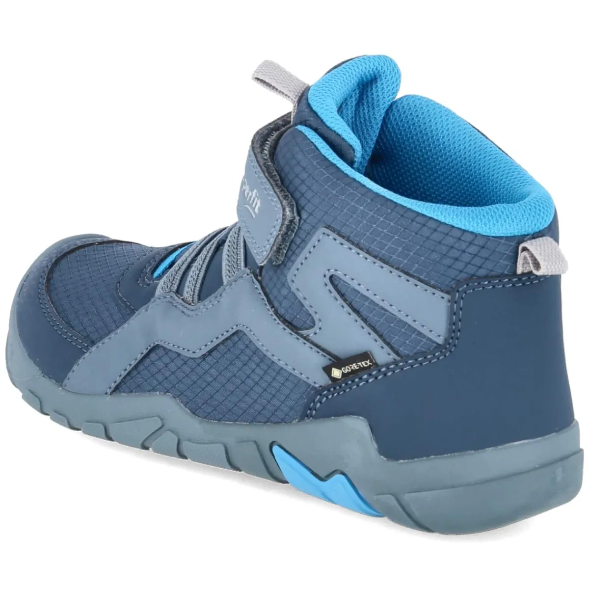 Der Superfit Klettboots TRACE in Blau vereint sportliches Design mit praktischen Details für aktive Kinder. Der wasserfeste Material-Mix aus Textil und Synthetik mit Goretex schützt verlässlich vor Nässe, während die hautfreundliche Lederdecksohle für ein angenehmes Fußgefühl sorgt. Klettverschluss und Elastikband ermöglichen einen flexiblen Sitz, die runde Spitze bietet Zehenfreiheit. Zwei Anziehlaschen erleichtern das Hineinschlüpfen, der gepolsterte Einstieg steigert den Tragekomfort. Die sehr flexible, rutschfeste Profilsohle gibt sicheren Halt auf verschiedenem Untergrund. Mit normaler Passform und Wechselfußbett ist der Schuh auch für Einlagen geeignet. Modetipp: Der kräftige Blauton setzt zu grauen Funktionsjacken und dunklen Jeans sportliche Akzente und passt ideal zu farblich abgestimmten Beanies.