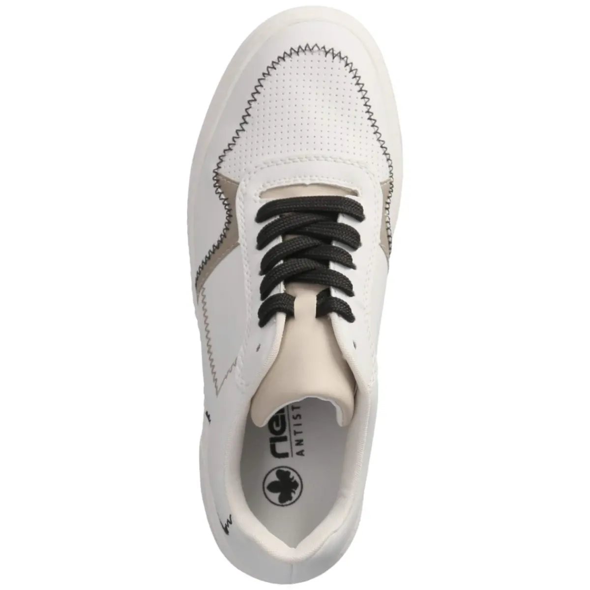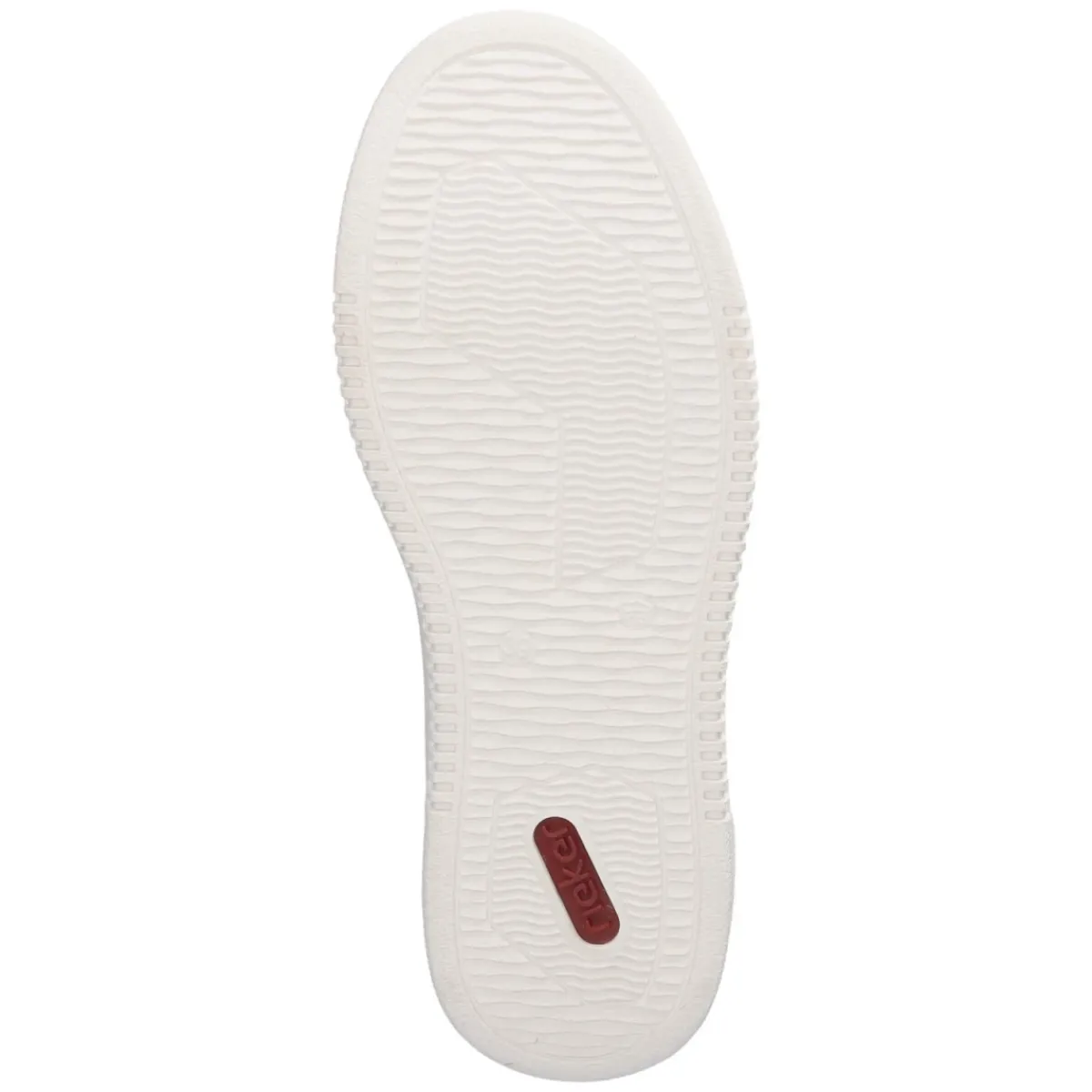 Der weiße Low Sneaker von Rieker verbindet sportliche Leichtigkeit mit urbanem Chic. Pflegeleichte Synthetik formt das klare Design, das durch perforiertes Schuhdeck, feine Ziernähte und dezente glänzende Akzente aufgewertet wird. Die runde Spitze und der verstärkte Zehen- und Fersenbereich sorgen für Alltagstauglichkeit, während der bequem gepolsterte Einstieg und das weich gepolsterte, herausnehmbare Wechselfußbett Komfort über den ganzen Tag bieten. Eine textile Decksohle schmeichelt dem Fuß, die rutschhemmende Laufsohle gibt verlässlichen Grip. Der 6 cm hohe Plateau-Absatz bringt unaufdringliche Höhe und streckt die Silhouette, ohne an Bequemlichkeit einzubüßen. Mit Schnürsenkeln individuell regulierbar und größengetreu in der Passform, gelingt ein sicherer Sitz für Damen. Modetipp: Zu Cropped-Jeans und einem cleanen Oversize-Shirt entfaltet der Sneaker seine minimalistische Wirkung, ein helles Crossbody-Bag setzt den finalen Akzent.