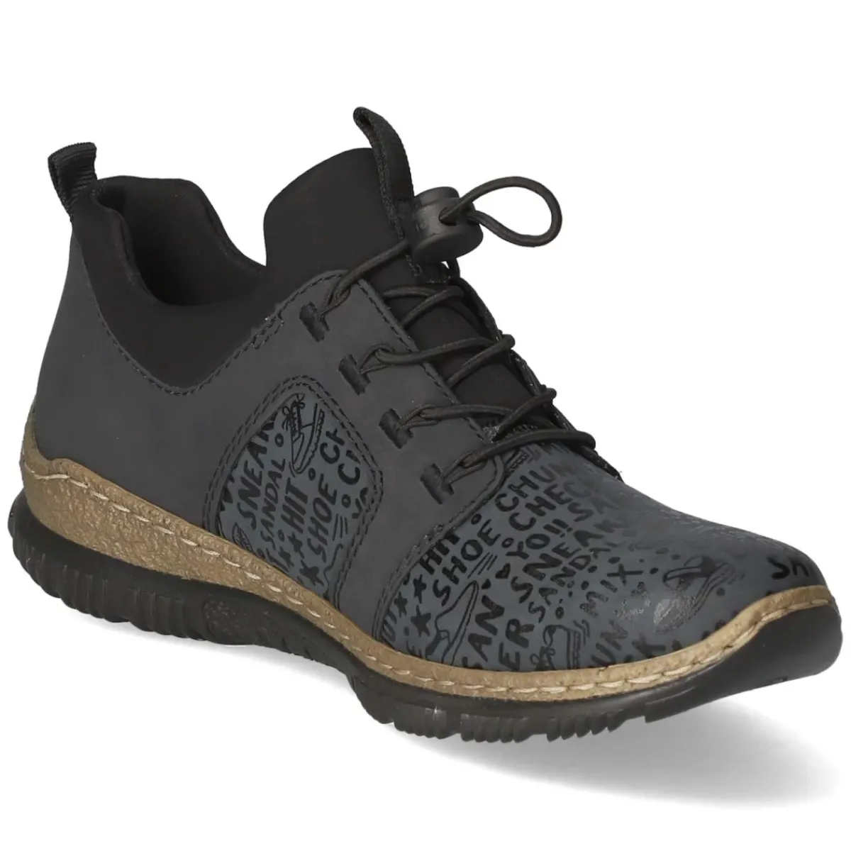 Der Low Sneaker von Rieker verbindet sportliche Leichtigkeit mit durchdachtem Komfort. Das Obermaterial aus Textil und Synthetik legt sich angenehm an den Fuß, während die runde Spitze und die textilen Decksohlen ein entspanntes Tragegefühl für Damen schaffen. Ein Elastikband sorgt für flexiblen Sitz, der Schnellverschluss ermöglicht ein zügiges An- und Ausziehen. Die flexible Profilsohle federt Schritte zuverlässig ab und bietet Grip im Alltag. Im dezent gemusterten Grauton lässt sich der Schuh vielseitig kombinieren und wirkt zugleich modern wie schlicht. Die Passform fällt normal aus und eignet sich damit für diverse Alltagsaktivitäten. Ob Weg ins Büro oder spontaner Stadtbummel, der Mix aus Leichtigkeit und Stabilität überzeugt. Modetipp: Harmonisch zu knöchellanger, leicht ausgewaschener Denim und einem Oversize-Blazer in Offwhite; ein feiner Sockenakzent in Melangegrau rundet den Look ab.