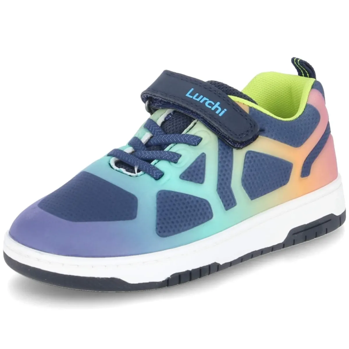 Der Low Sneaker von Lurchi verbindet sportliche Leichtigkeit mit kindgerechter Funktion. Das moderne Obermaterial aus Textil und Synthetik zeigt in Blau einen lebendigen Farbverlauf mit Regenbogenakzenten, während die runde Schuhspitze und der verstärkte Zehen- sowie Fersenbereich zusätzlichen Schutz bieten. Ein bequemer Klettverschluss mit einem Klettriemen erleichtert das An- und Ausziehen und sorgt für sicheren Halt. Dank gepolstertem Einstieg und geringem Gewicht bleibt der Tragekomfort den ganzen Tag hoch. Die flexible, rutschhemmende Laufsohle unterstützt natürliche Bewegungen und bietet Griffigkeit auf unterschiedlichen Untergründen. Ein Wechselfußbett aus Textil erhöht die Hygiene und Anpassbarkeit, die Passform fällt normal aus. Gelabelte Details runden das Design ab. Modetipp: Zu Jeansshorts, farblich abgestimmten Socken und einem leichten College-Cardigan entsteht ein frischer Look, der die Regenbogen-Highlights dezent aufgreift.