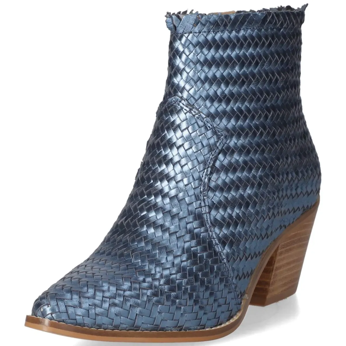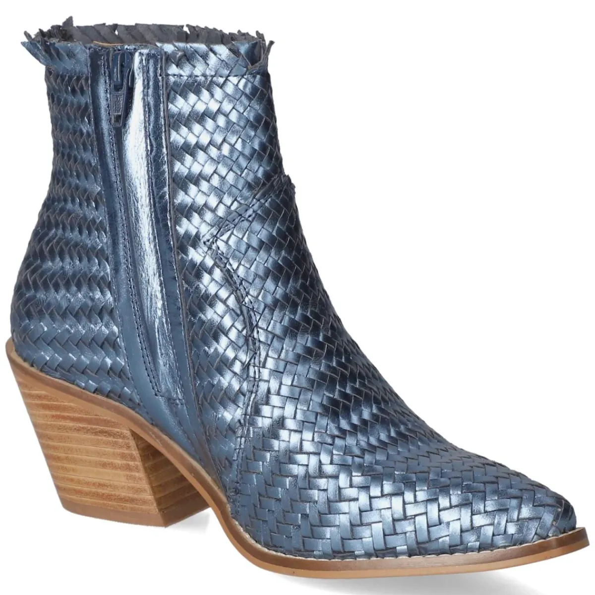 Der Ankle Boot von Bullboxer vereint feminine Linienführung mit urbaner Lässigkeit. Blaues Glattleder mit schimmernder Metallic-Note verleiht dem spitzen Leisten moderne Eleganz, während der 6 cm hohe Blockabsatz für souveränen Stand sorgt. Atmungsaktives Echtleder und ein gepolstertes Lederfußbett umhüllen den Fuß komfortabel, die flexible, rutschfeste Laufsohle bietet verlässliche Traktion im Alltag. Ein bequemer Reißverschlußeinstieg mit Zipper in geflochtener Optik erleichtert das An- und Ausziehen, verstärkte Zehen- und Fersenpartien erhöhen die Formstabilität. Handwerkliche Verarbeitung trifft auf zeitloses Design, das von Büro bis Abend mühelos funktioniert. Der Schnitt fällt normal aus und streckt die Silhouette wirkungsvoll. Modetipp: Zu Cropped-Denim und Wollmantel oder zu Satinkleid und blickdichter Strumpfhose entsteht ein stilvoller Kontrast aus Glanz und Struktur.