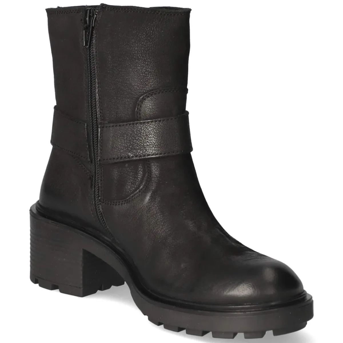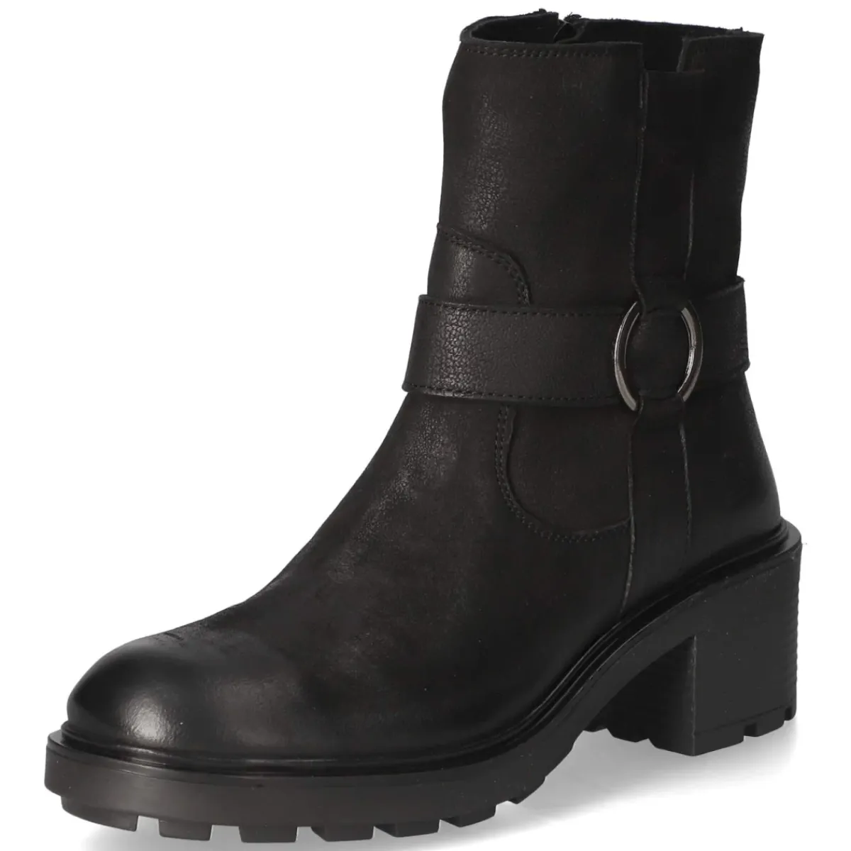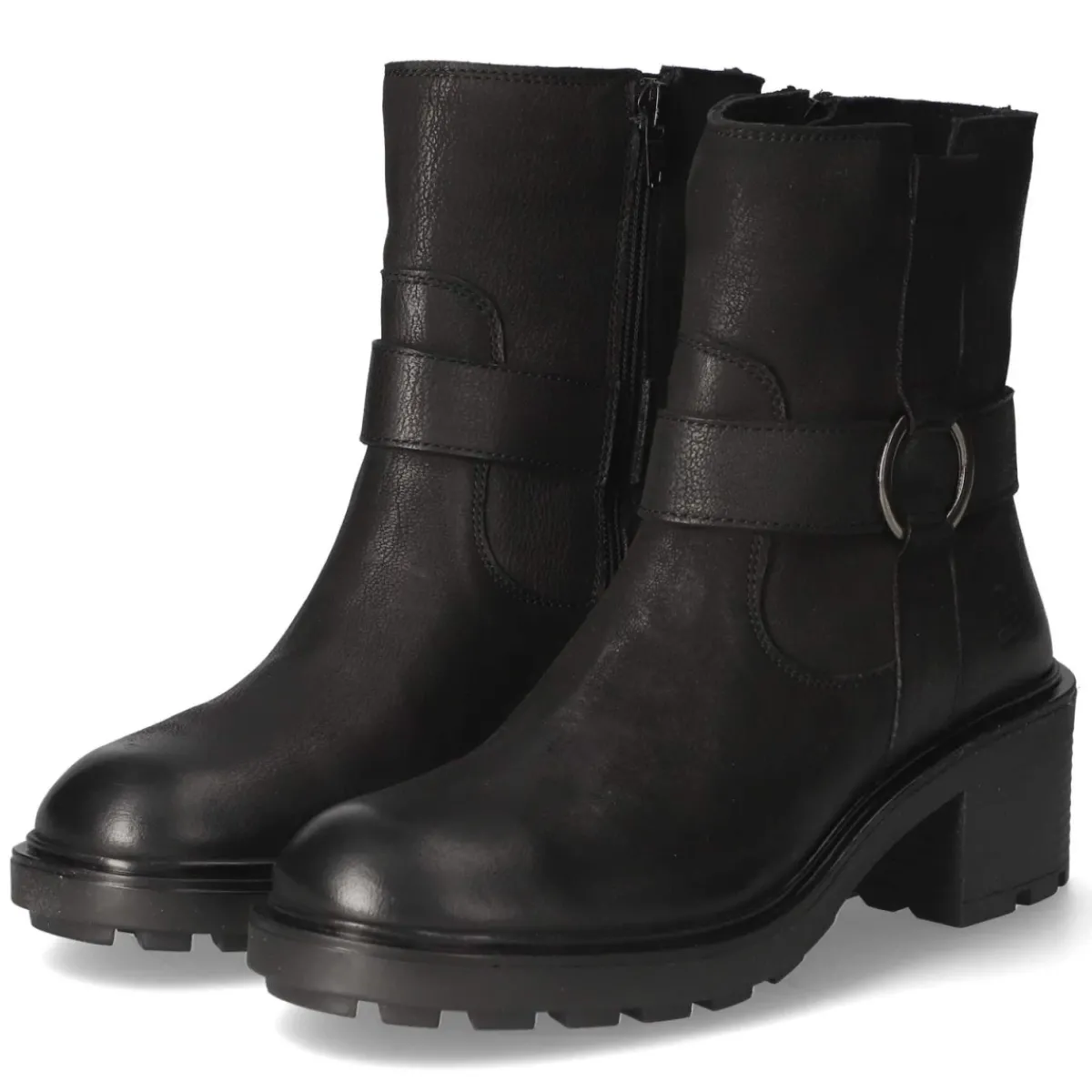 Diese Biker Boots von Bullboxer setzen mit schwarzem Glattleder, runder Spitze und markanter Ringschnalle ein klares Statement. Der 5‑cm‑Blockabsatz und die kräftige Profilsohle geben Stand und urbanen Charakter, während atmungsaktives Echtleder am Schaft für ein angenehmes Fußklima sorgt. Ein bequemer Reißverschlußeinstieg erleichtert das An- und Ausziehen, das gepolsterte Fußbett mit synthetischer Decksohle steigert den Tragekomfort. Die Passform fällt normal aus und lässt sich vielfältig kombinieren, von Denim bis Kleid. Modetipp: Für einen spannenden Stilbruch die Boots zu einem fließenden Midikleid und einem strukturierten Blazer tragen; dazu eine kompakte Crossbody‑Bag wählen, um den robusten Look mit einer eleganten Note auszubalancieren.
