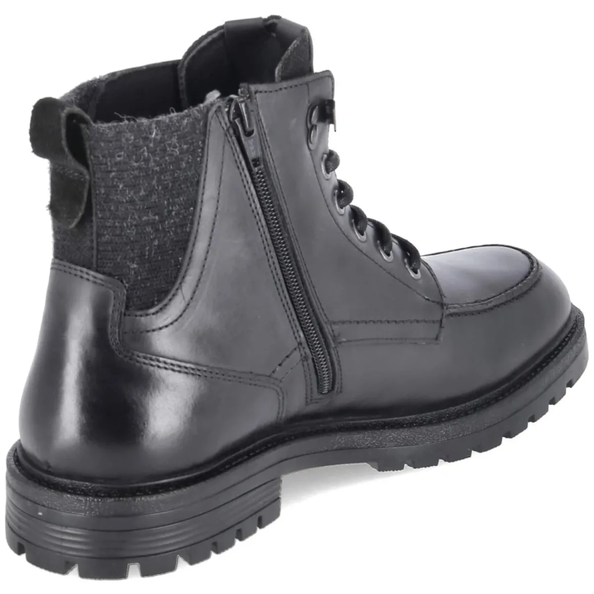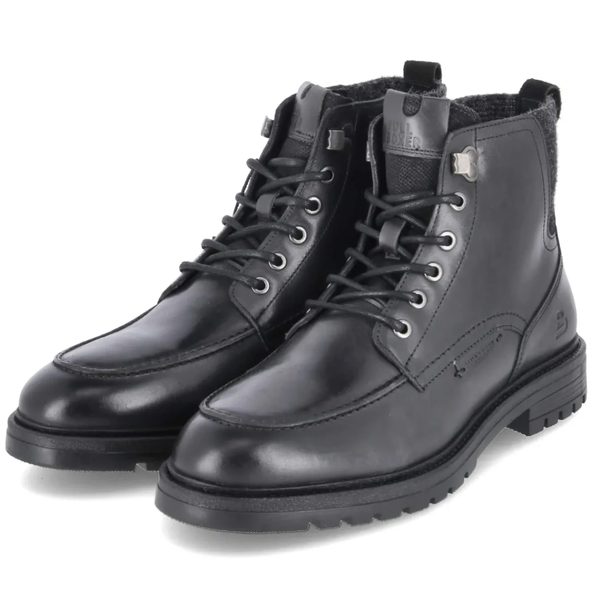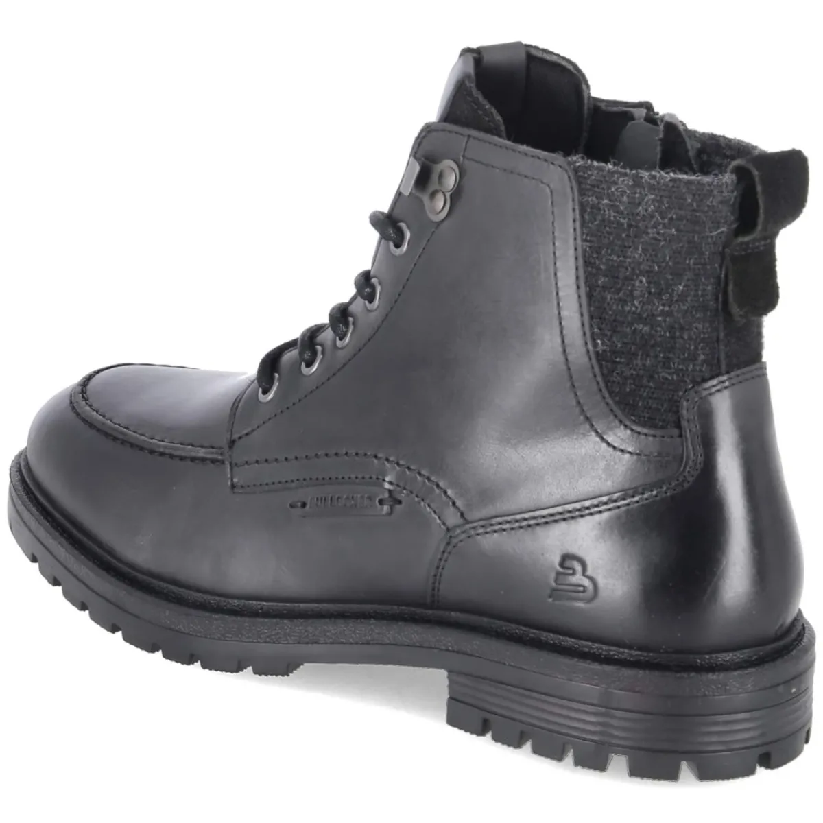 Der Herren-Boot von Bullboxer kombiniert klassisches Design mit robuster Alltagstauglichkeit. Schwarzes Glattleder aus langlebigem Echtleder und die markante Wulstnaht auf dem Schuhdeck setzen dezente Akzente, während die runde Spitze genügend Zehenfreiheit bietet. Ein 3 cm hoher Blockabsatz und die rutschhemmende Profilsohle sorgen für sicheren Auftritt auf nassem Pflaster. Innen überzeugt eine textile Decksohle sowie das komfortable Wechselfußbett, das bei Bedarf gegen eigene Einlagen getauscht werden kann. Schnürsenkel geben präzisen Halt, der zusätzliche Reißverschluss und die Anziehlasche erleichtern den schnellen Einstieg; ein elastischer Einsatz stabilisiert den verstärkten Fersenbereich. Der Schnitt fällt normal aus und macht den Boot zum unkomplizierten Begleiter für Büro und Freizeit. Modetipp: Mit dunklem Denim, Feinstrickpullover und einem Mantel in Karamell entsteht ein zeitloser, urbaner Look.