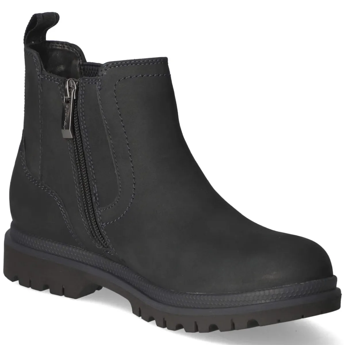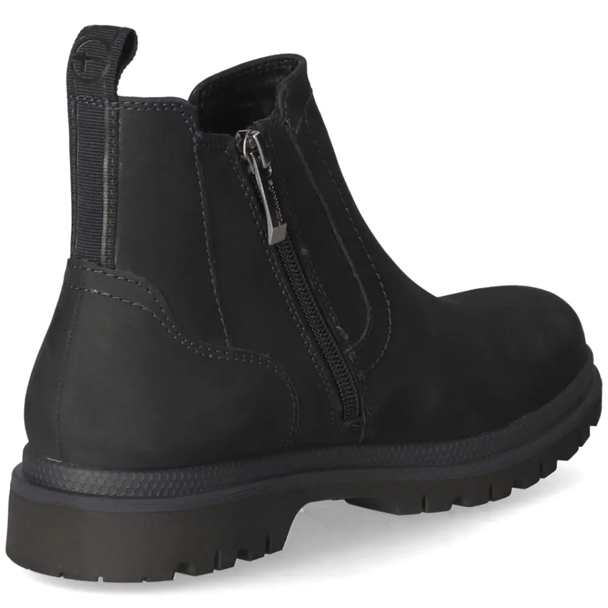 Dieser Chelsea Boot von Tamaris interpretiert den Klassiker modern und alltagstauglich. Das tiefe Blau kann je nach Licht fast Schwarz wirken und verleiht dem Look eine edle Zurückhaltung. Obermaterial aus Leder und Textil trifft auf atmungsaktives Echtleder, das zusammen mit dem leichten Futter ein ausgeglichenes Fußklima an kühlen Tagen unterstützt. Der 3 cm hohe Blockabsatz und die runde Spitze stehen für entspannten Komfort, während Reißverschluss, Elastikeinsatz am Schaft und Anziehlasche das An- und Ausziehen angenehm machen. Die flexible, rutschfeste Profilsohle sorgt für sicheren Halt auf nassem Asphalt, das gepolsterte Wechselfußbett und die textile Decksohle bieten bequeme Dämpfung. Fällt normal aus und begleitet zuverlässig vom Büro bis zum Stadtbummel. Modetipp: Zu Straight-Leg-Jeans und Wollmantel tragen, dazu Strick in Blautönen für einen harmonischen Ton-in-Ton-Auftritt.