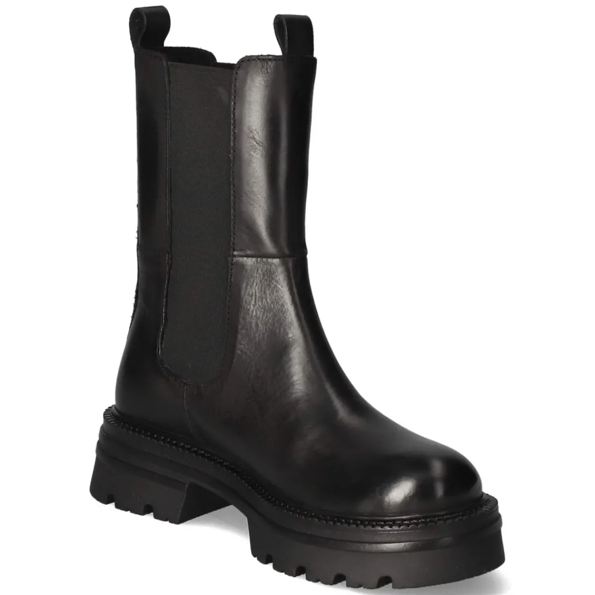 Der Chelsea Boot von Bullboxer interpretiert einen zeitlosen Klassiker mit klarer Linienführung und robustem Auftritt. Glattes Echtleder formt den Schaft (ca. 19 cm Höhe, ca. 25 cm Umfang) und erhält durch die verstärkte Ferse dauerhafte Stabilität. Elastikeinsätze an den Seiten und zwei Anziehlaschen ermöglichen ein komfortables Hineinschlüpfen, während die runde Spitze und das gepolsterte Fußbett mit synthetischer Decksohle für langes Tragen prädestiniert sind. Der 5 cm hohe Blockabsatz verleiht angenehme Höhe, ohne an Standfestigkeit einzubüßen. Eine rutschfeste Profilsohle sorgt auf nassem Asphalt wie auf Kopfsteinpflaster für verlässlichen Grip. Der Fit fällt normal aus, das seitliche Markendetail setzt einen dezenten Akzent. Modetipp: Besonders stimmig zu geraden Cropped-Jeans und einem strukturierten Wollmantel, dazu ein Ledergürtel in Ton-in-Ton für einen durchdachten City-Look.