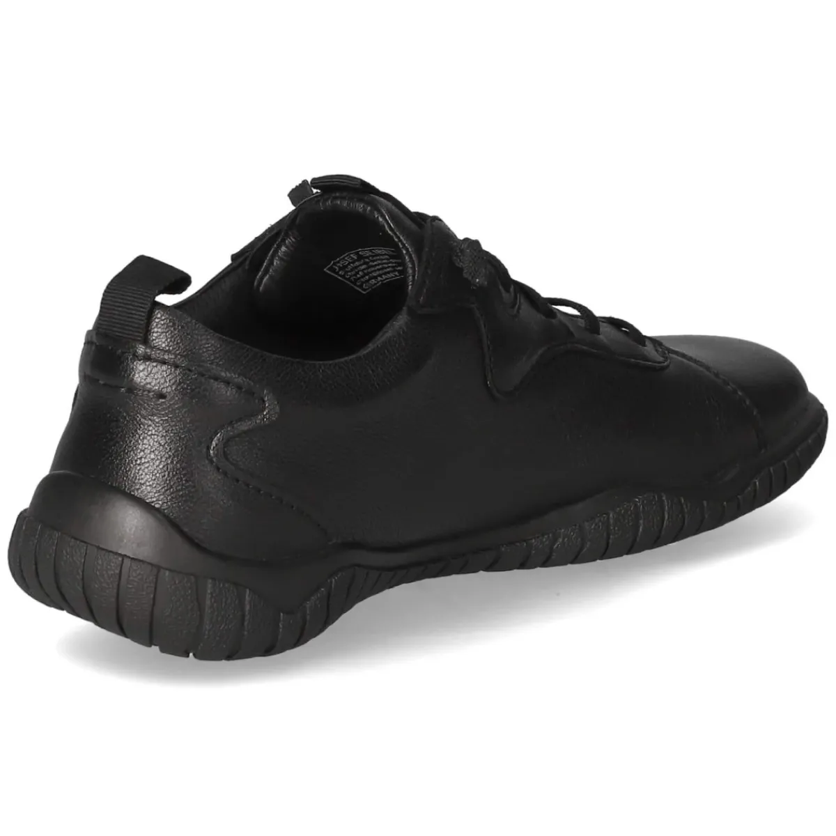Der Halbschuh WYNONA 01 von Josef Seibel verbindet robustes Echtleder in klassischem Schwarz mit komfortorientierten Details für den Alltag. Glattes Obermaterial und eine runde Schuhspitze sorgen für eine zeitlose Optik und angenehme Zehenfreiheit. Das herausnehmbare, gepolsterte Fußbett mit Lederdecksohle bietet weichen Auftritt und lässt sich bei Bedarf gegen eigene Einlagen tauschen. Eine leicht gepolsterte Einstiegskante, die verstärkte Ferse und die praktische Anziehlasche erleichtern das An- und Ausziehen, während die elastische Schnürung mit klassischen Schnürsenkeln sicheren Halt gewährleistet. Die flexible, rutschfeste Laufsohle unterstützt zuverlässigen Grip in der City und im Büro. Dank der normal ausfallenden Passform und vielseitiger Kombinierbarkeit entsteht ein stimmiger Begleiter für viele Anlässe. Modetipp: Mit Zigarettenhose und Oversize-Blazer getragen entsteht ein moderner Business-Casual-Look.
