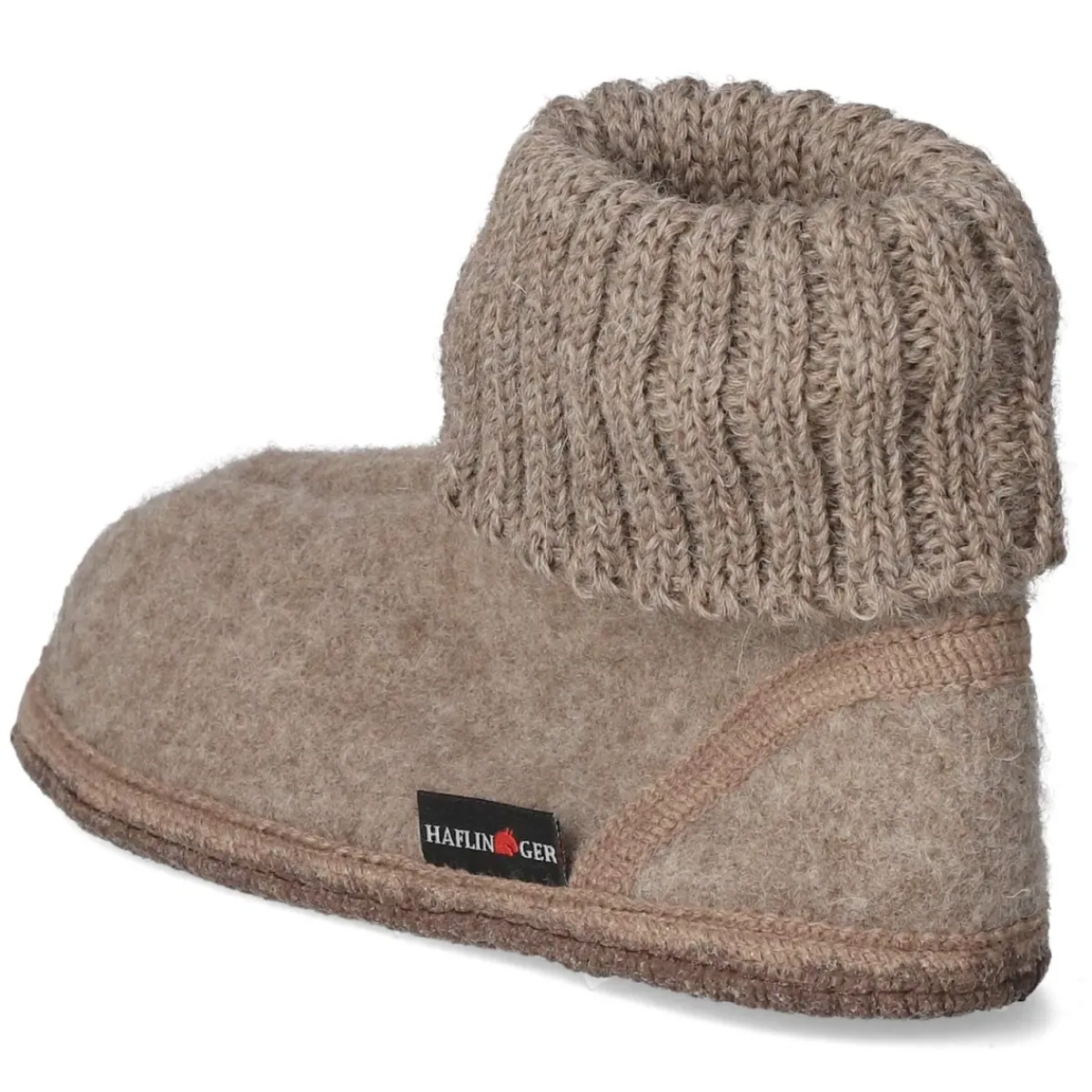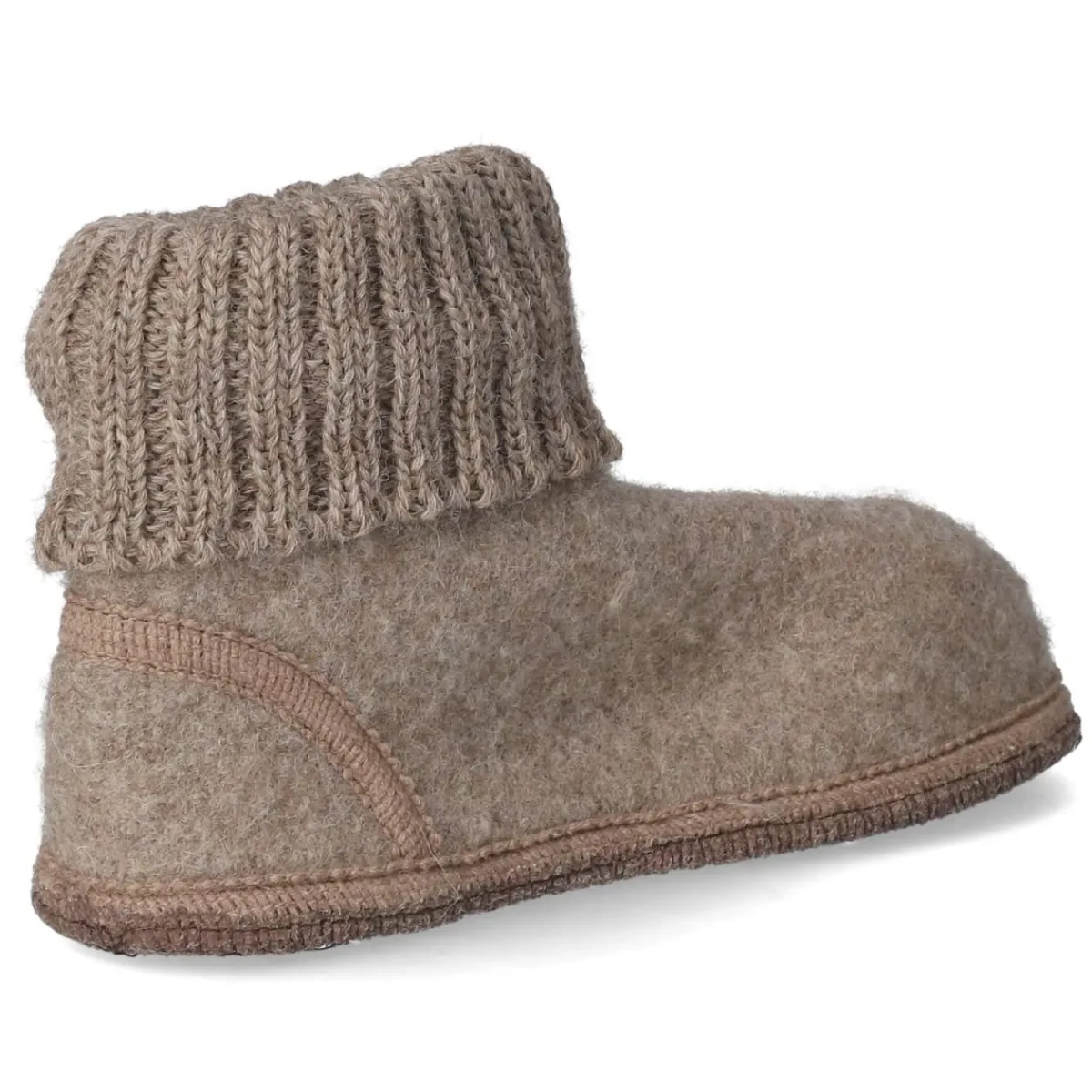 Der Hüttenschuh Karl von Haflinger setzt auf behagliche Wärme und eine klare, zeitlose Optik. Das griffige Textil-Obermaterial in Beige harmoniert mit dem umschlagbaren Schaftrand in Strickoptik, der den Look variierbar macht. Innen sorgt ein angenehmes Warmfutter mit weicher Textildecksohle für komfortables Tragegefühl, während die runde Spitze und der unkomplizierte Einstieg ohne Verschluss den Alltag erleichtern. Die verstärkte Ferse gibt Stabilität, die flexible, rutschfeste Laufsohle bietet Halt auf glatten Böden. Ein feines Markendetail rundet das Design ab. Der Größenhinweis fällt normal aus und erleichtert die Wahl. Modetipp: Ton-in-Ton zu hellen Stricksocken, einer weichen Loungehose und einem grob gestrickten Cardigan kombinieren; der umgeschlagene Schaftrand setzt dabei einen gemütlichen Akzent und betont die ruhige, naturverbundene Farbpalette.