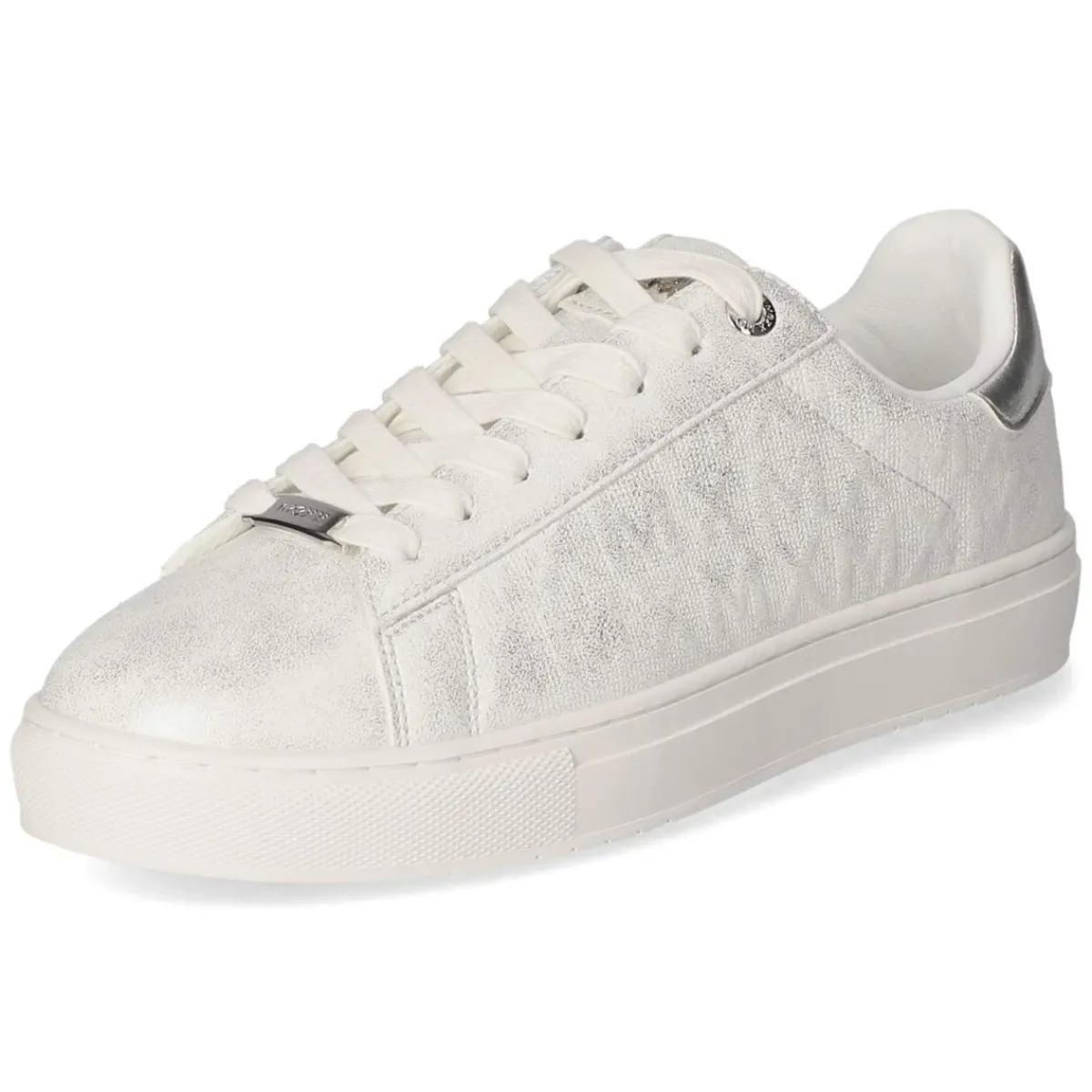 Der Low Sneaker LOUA BLAKE von Mexx setzt ein modisches Statement zwischen Glanz und Komfort. Das silberfarbene Synthetik-Obermaterial zeigt eine elegant schimmernde Oberfläche, die durch feine Ziernähte, Markendetails und eine dezente Prägung veredelt wird. Der runde Leisten und die verstärkte Ferse sorgen für eine formschöne, stabile Silhouette. Ein bequem gepolsterter Einstieg schmiegt sich angenehm an, die Schnürung ermöglicht eine präzise, individuelle Anpassung. Innen überzeugt eine textile Decksohle mit gepolstertem, herausnehmbarem Wechselfußbett. Die flexible, rutschhemmende Laufsohle gibt Halt im urbanen Alltag, der Größenhinweis fällt normal aus. Modetipp: Den kühlen Metallic-Ton mit weißen Wide-Leg-Jeans, einem melierten Stricktop und cleaner Silber-Bag kombinieren, um den Glanz modern und unaufdringlich zu inszenieren.