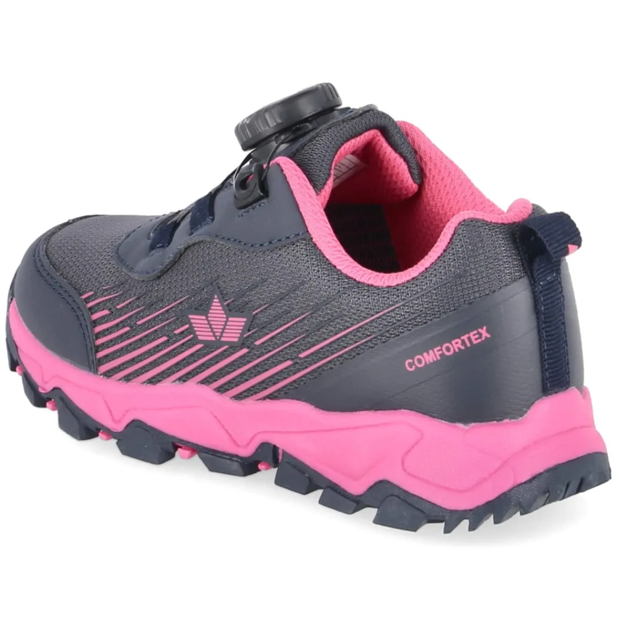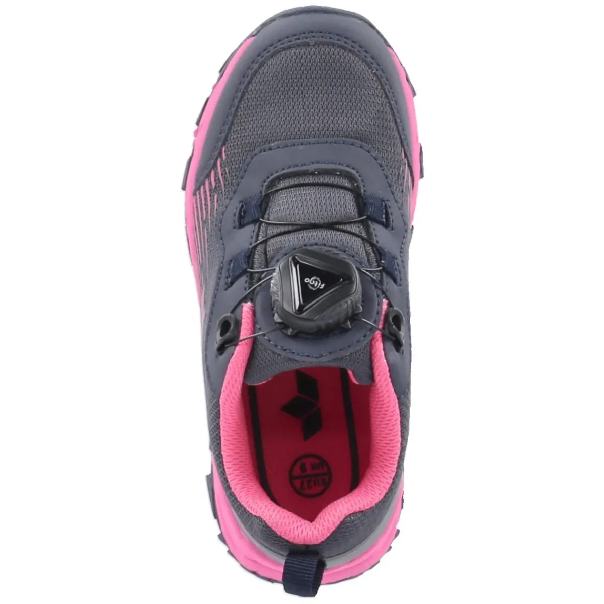 Der Outdoorschuh LAKESIDE von Lico begleitet aktive Kinder zuverlässig durch Kita, Spielplatz und Waldweg. Der wetterfeste Material-Mix aus Textil und Synthetik mit Comfortex Membrane hält Nässe draußen und lässt zugleich angenehmen Tragekomfort entstehen. Der kinderleichte Drehverschluss sorgt für sicheren Halt und lässt sich mit kleinen Händen spielend bedienen, unterstützt von Anziehlasche und gepolstertem Einstieg. Die rutschfeste Profilsohle bietet Grip auf verschiedenen Untergründen, während verstärkter Fersen- und Zehenbereich zusätzlichen Schutz gibt. Die runde Schuhspitze und das komfortable Wechselfußbett mit textiler Decksohle bieten Platz und Bequemlichkeit im Alltag. In Dunkelblau mit pinken Highlights setzt der Schuh frische Akzente und fällt normal aus. Modetipp: Besonders stimmig zu einer dunkelblauen Softshelljacke und einer Leggings mit pinken Details.