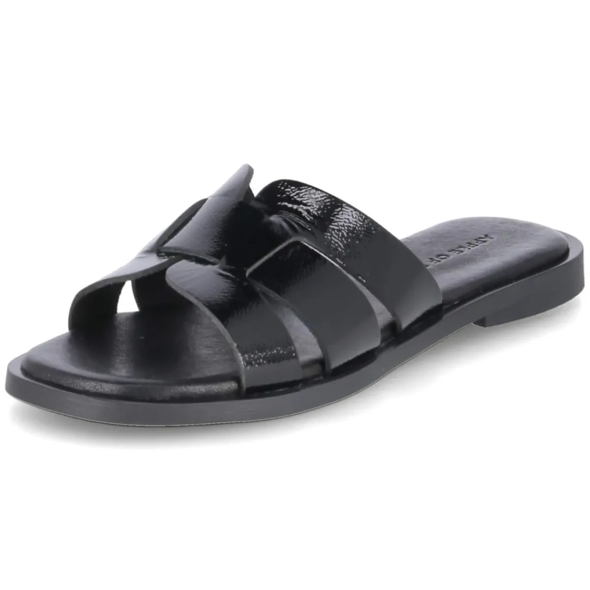 Die Pantoletten ALYCIA von Apple of Eden setzen auf klare Linien und eine elegante Lackoptik, die dem zeitlosen Schwarz zusätzlichen Glanz verleiht. Das offene Design lässt den Fuß luftig wirken, während das gepolsterte Fußbett gemeinsam mit der Lederdecksohle für spürbaren Komfort sorgt. Dank des unkomplizierten Schlupfeinstiegs wird stilvolle Lässigkeit zum täglichen Begleiter – ob im Büro, beim Stadtbummel oder zum Dinner. Die Form fällt normal aus und erleichtert die Größenauswahl. Durch das edle Lackleder wirken die Pantoletten feminin und hochwertig, zugleich lassen sie sich aufgrund der neutralen Farbgebung vielseitig zu bestehenden Garderoben kombinieren. Modetipp: Zum monochromen Ensemble mit weiter Anzughose und Satinbluse stylen und mit einer feinen Knöchelkette einen modernen Akzent setzen.