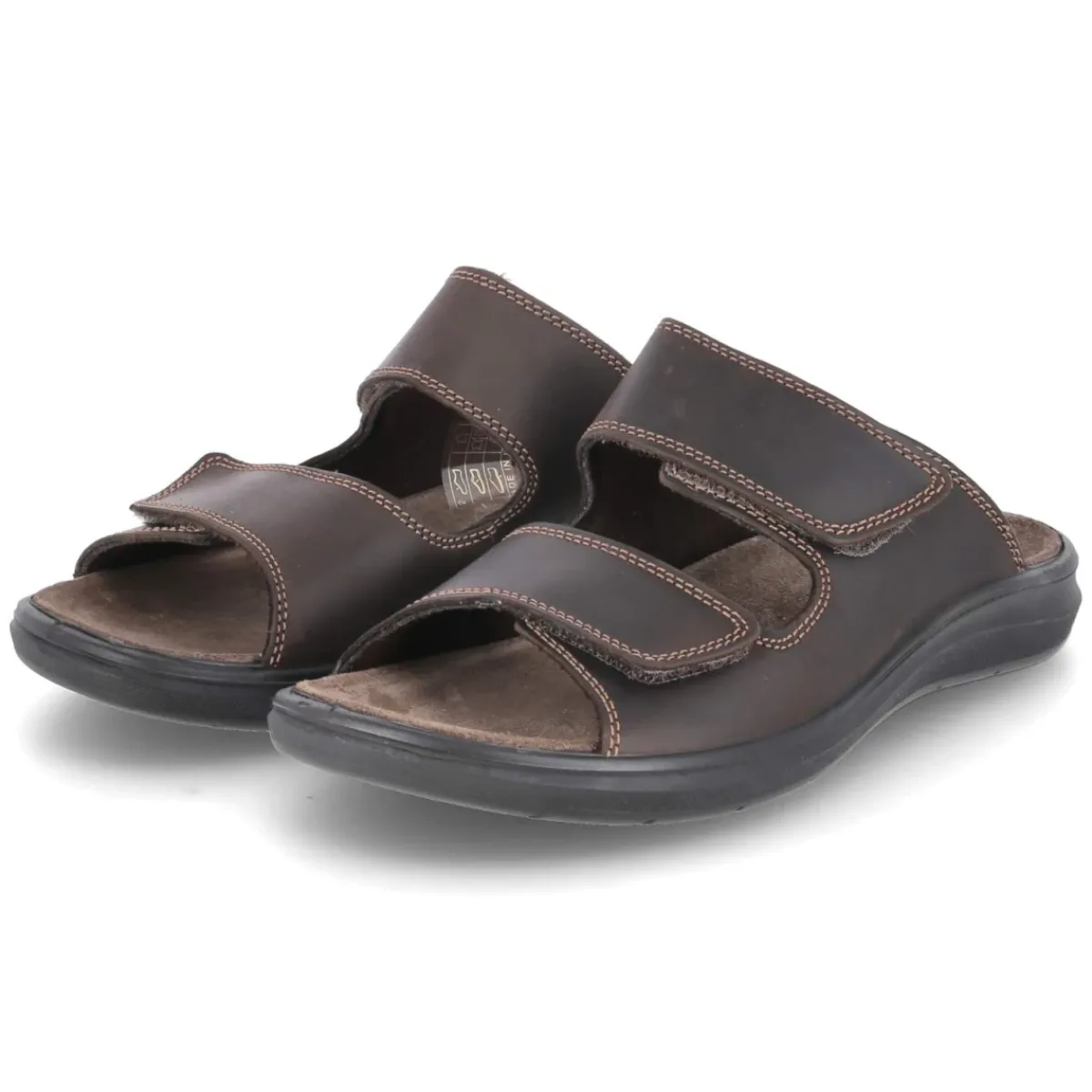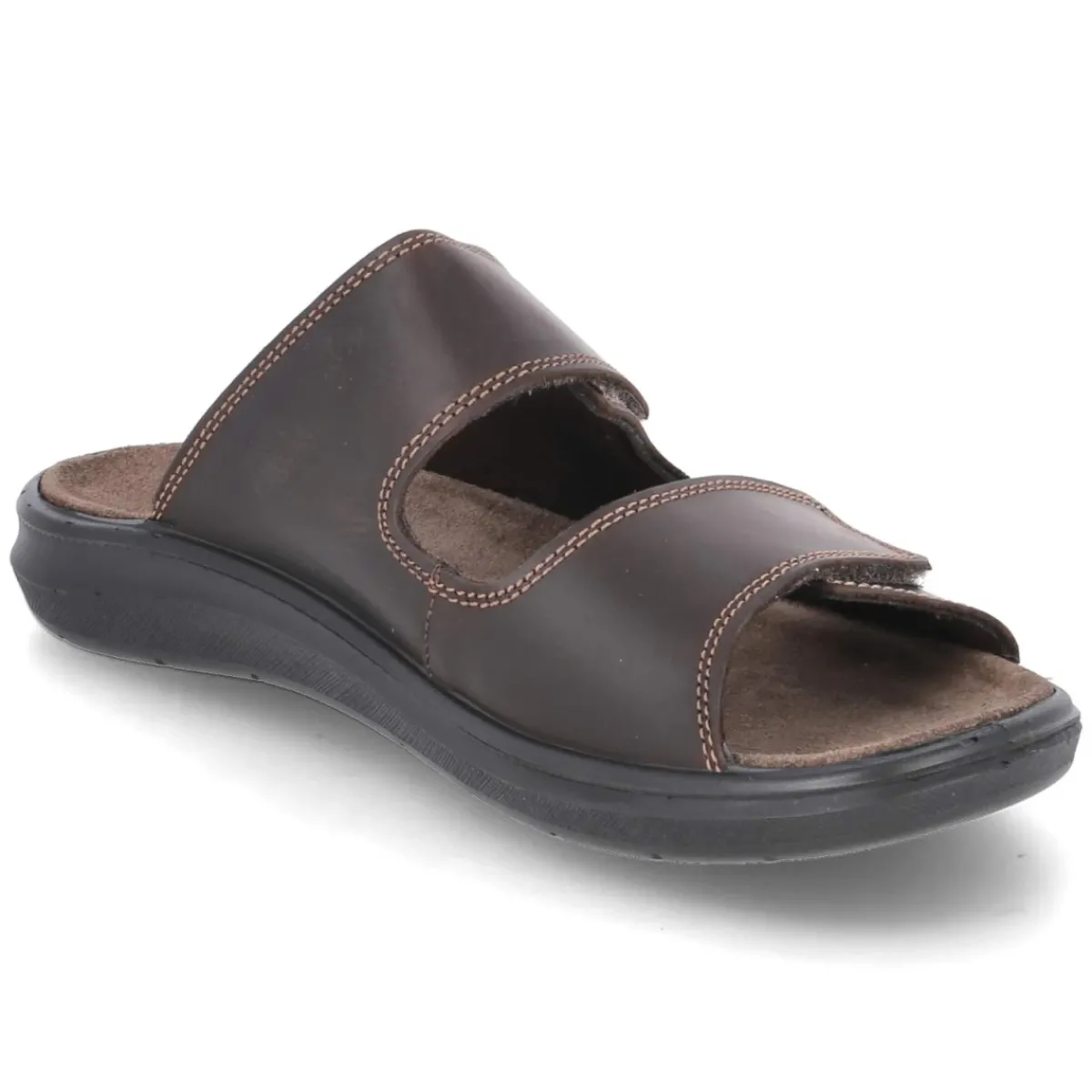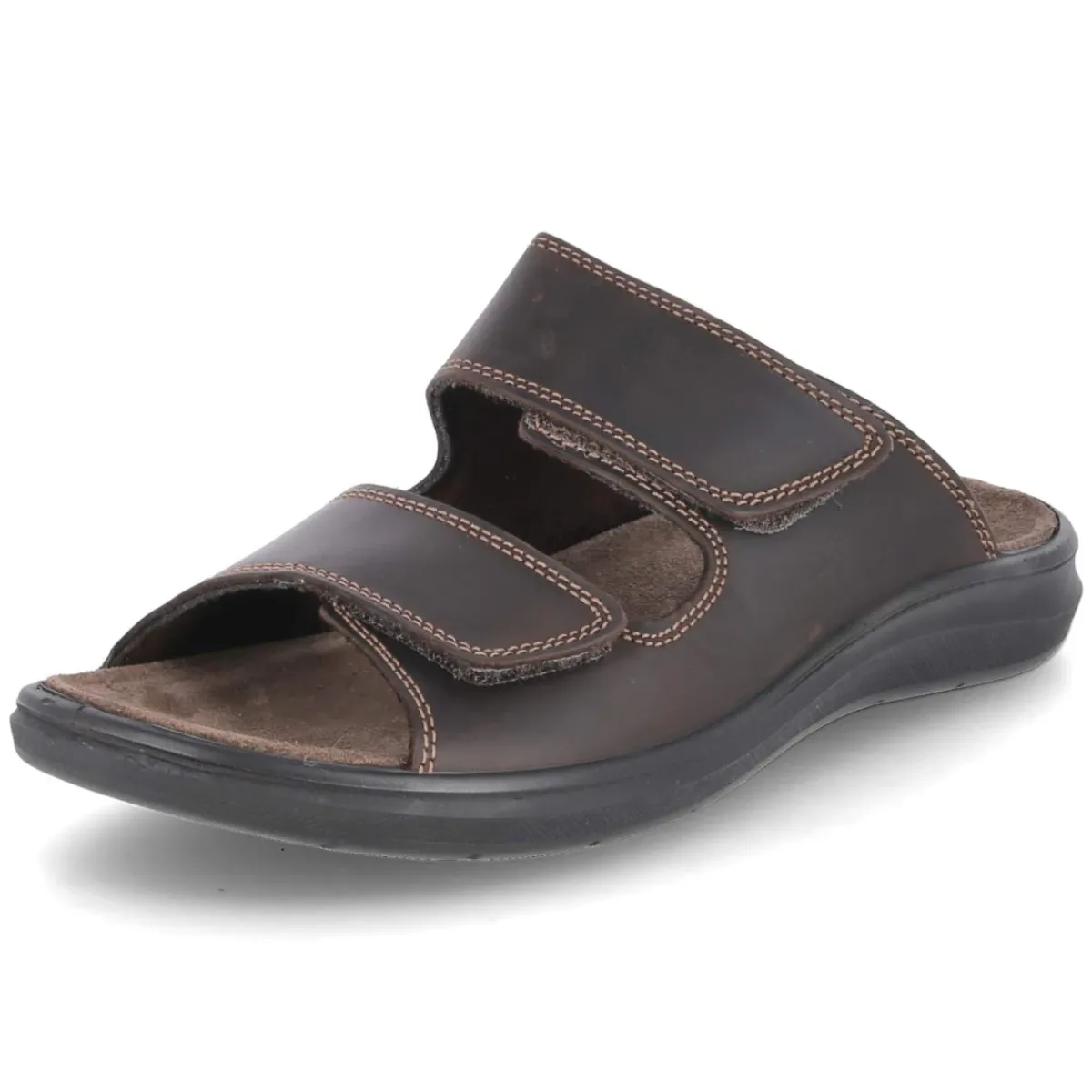 Beliano präsentiert Pantoletten, die Komfort und Langlebigkeit vereinen. Das braune Glattleder zeigt sich robust und zeitlos, während zwei Klettverschlüsse eine individuell regulierbare Passform ermöglichen. Die offene Schuhspitze sorgt für angenehme Belüftung, das gepolsterte Lederfußbett schmiegt sich weich an und unterstützt entspanntes Gehen. Eine flexible Laufsohle gibt Halt und fördert ein natürliches Abrollen. Die Passform fällt normal aus, ideal für unkomplizierte Größenwahl. Langlebiges Echtleder trifft auf eine weiche Decksohle fürs Fußwohl – perfekt für Alltag, Reise oder den entspannten Feierabend. Modetipp: Mit Leinenhose in Naturtönen und einem lockeren Hemd entsteht ein sommerlicher Look; ein geflochtener Gürtel in Braun greift die Farbe der Pantoletten stilvoll auf.