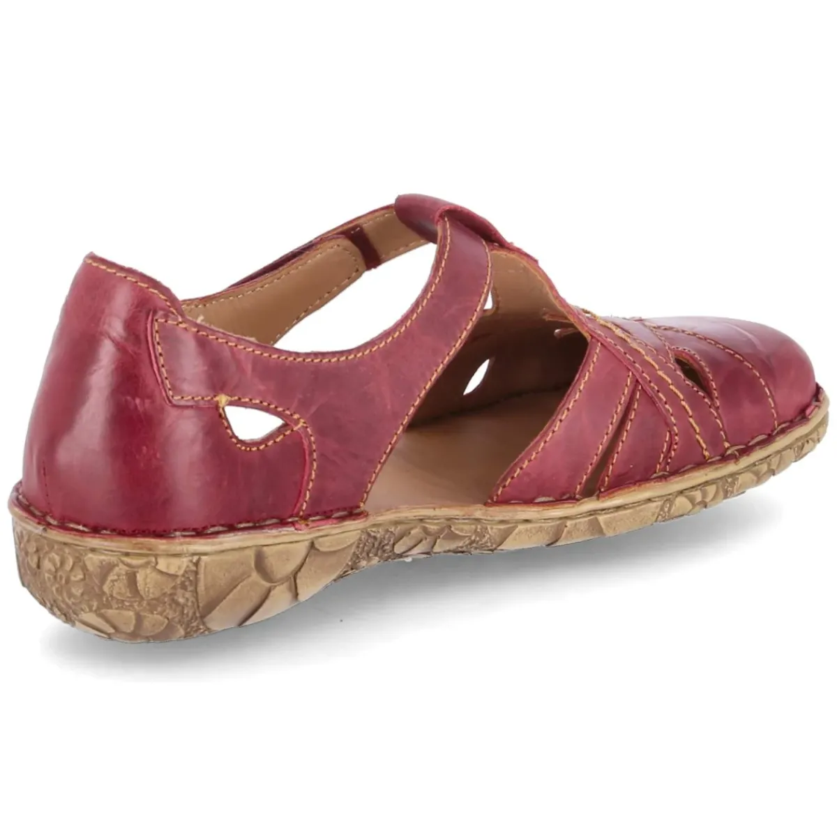 Die Sandalen ROSALIE 29 von Josef Seibel setzen in strahlendem Rot ein souveränes Statement und verbinden sommerliche Leichtigkeit mit durchdachter Funktion. Das Obermaterial aus hochwertigem Glattleder und die Lederdecksohle umschließen den Fuß angenehm, während das gepolsterte Fußbett spürbare Entlastung bei jedem Schritt bietet. Dank T-Steg mit Klettverschlussriemen und zusätzlichem Klettverschluss gelingt ein schneller, individuell regulierbarer Sitz; die Passform fällt normal aus. Langlebiges Echtleder, markante Nähte sowie ein Flechtelement im Zehenbereich prägen den Look, die runde Schuhspitze und die flexible Laufsohle sorgen für entspanntes Gehen. Ein relaxtes Leichtgewicht für warme Tage, abgestimmt auf Damen und Erwachsene, die Komfort und Stil vereinen. Modetipp: Mit fließender Leinenhose und gestreiftem Shirt entsteht ein moderner Riviera-Look.