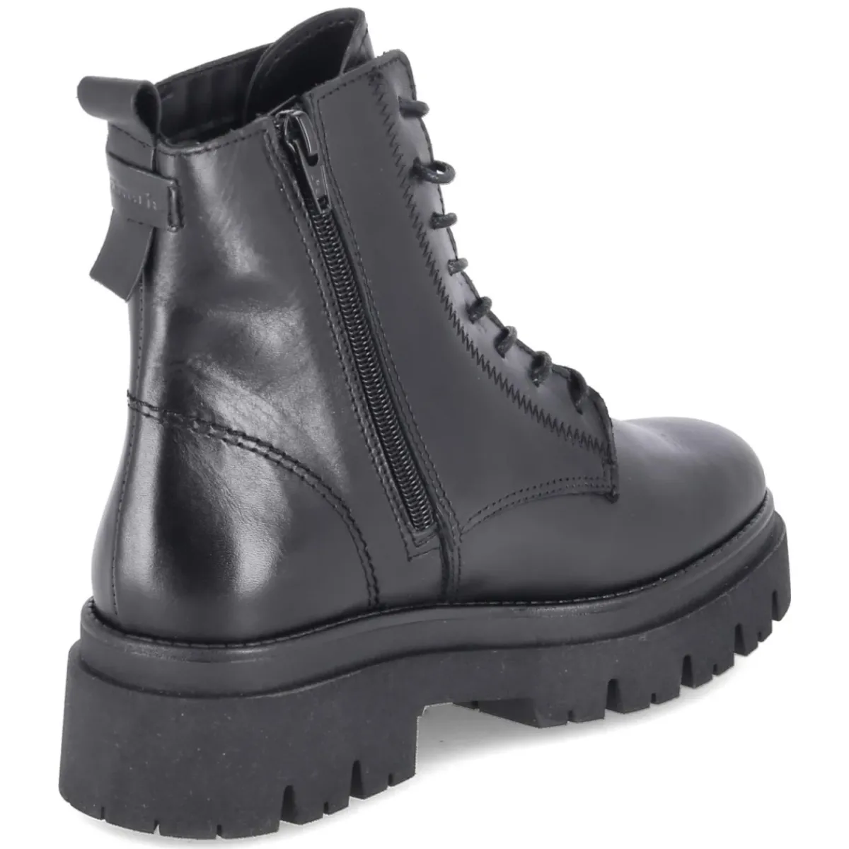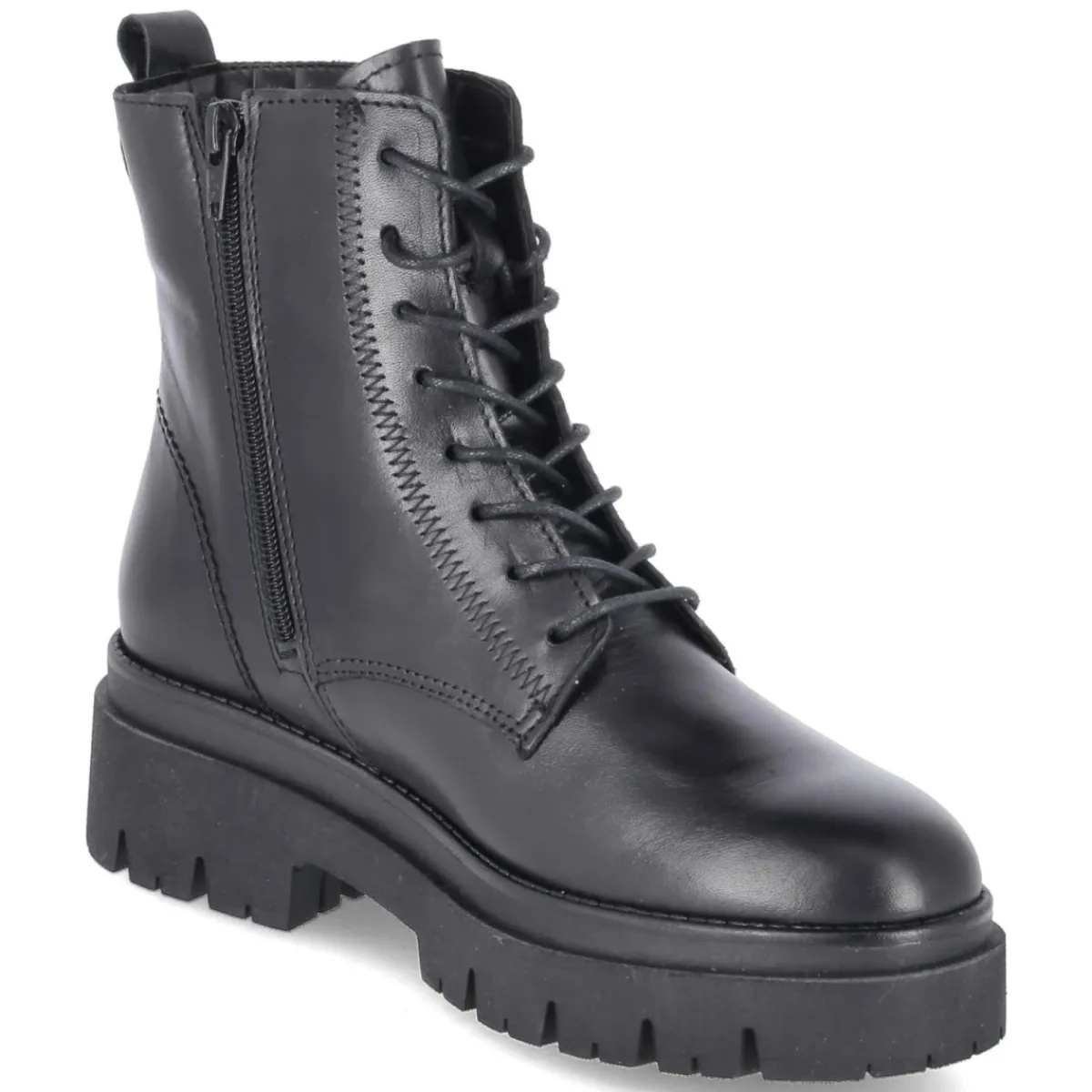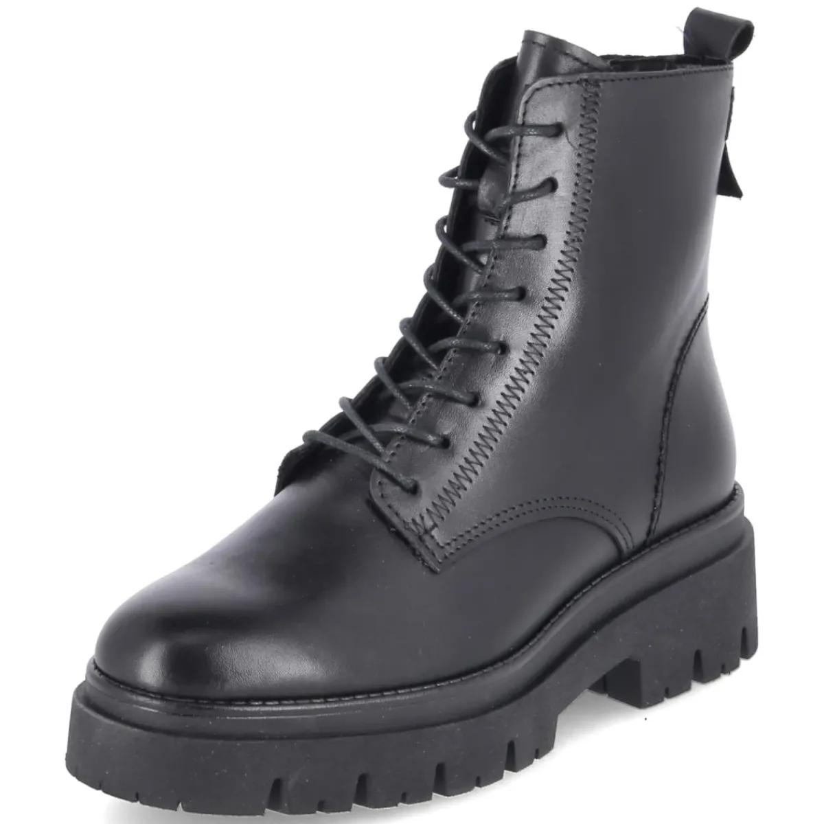 Der Schnürboot von Tamaris präsentiert sich in edlem Schwarz und verbindet urbanen Chic mit funktionaler Alltagstauglichkeit. Glattleder in langlebiger Qualität bildet das Obermaterial, während die runde Schuhspitze bequemen Zehenraum bietet. Der Blockabsatz mit 5 cm Höhe sorgt für einen stabilen Stand und eine feminine Silhouette. Eine starke Profilsohle mit rutschhemmender Laufsohle liefert verlässlichen Grip, die Anziehlasche erleichtert das Hineinschlüpfen. Für passgenauen Halt lässt sich der Schaft über Schnürsenkel regulieren, der praktische Reißverschluss ermöglicht dennoch einen schnellen Einstieg. Innen punktet eine Decksohle aus Textil und Synthetik für angenehmen Tragekomfort. Das Modell fällt normal aus und überzeugt mit modischem Design, das von Casual bis Business smart funktioniert. Modetipp: In Kombination mit Cropped-Flare-Jeans, Strickrolli und Oversize-Wollmantel entsteht ein moderner City-Look mit markantem Finish.