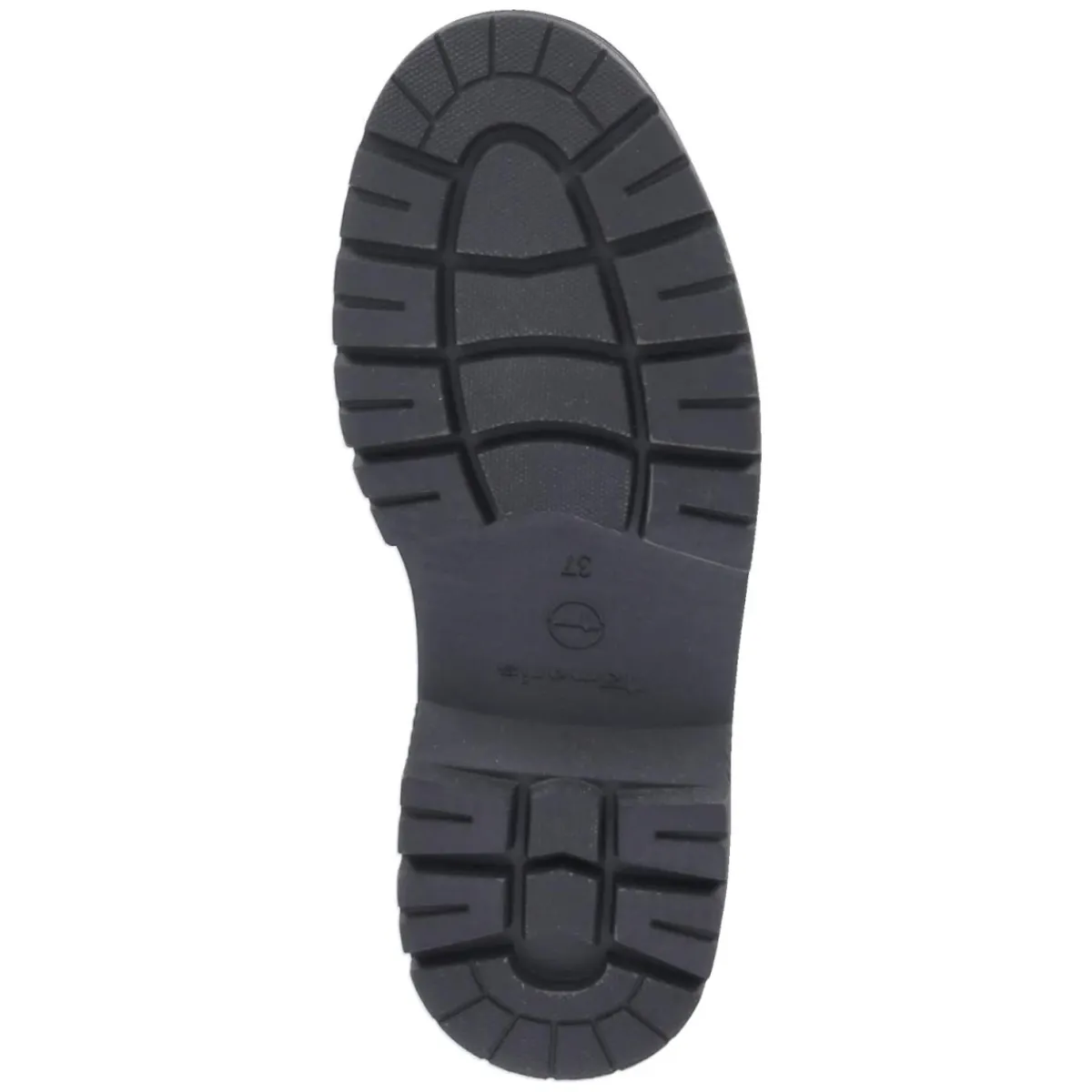 Diese Tamaris Damen-Schnürboots setzen auf einen robusten Material-Mix aus Leder und Synthetik und präsentieren sich in einem satten Grün, das je nach Licht einen warmen Braunton annehmen kann. Der schmale Schnitt umschmeichelt den Fuß, während die runde Spitze und die Schnürung für angenehmen Platz und verlässlichen Halt sorgen. Ein 3 cm hoher Blockabsatz stabilisiert jeden Schritt, die flexible, rutschfeste Profilsohle bietet Grip auf nassem Asphalt. Für spürbaren Komfort sorgt die textile Decksohle mit bester Memory-Foam-Fußbettung; das Wechselfußbett lässt sich bei Bedarf im Handumdrehen austauschen. Der verstärkte Fersenbereich und eine praktische Anziehlasche erleichtern das Handling. Trotz der robusten Bauart bleiben die Boots ein relaxtes Leichtgewicht – ideal für lange Tage in der Stadt. Modetipp: Zu cropped Straight-Jeans, grobem Strick und einem sandfarbenen Trench entsteht ein lässig-edler City-Look.