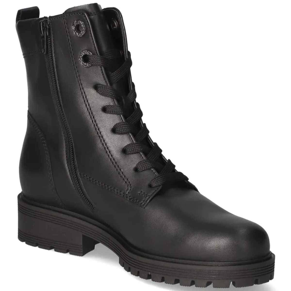 Zeitloses Design trifft auf Komfort: Die schwarzen Gabor Schnürstiefeletten überzeugen mit runder Spitze und 3 cm hohem Blockabsatz für einen stabilen Auftritt im Alltag. Das Obermaterial aus robustem Glattleder zeigt sich formbeständig, während der verstärkte Fersenbereich zusätzlichen Halt bietet. Innen sorgt eine textile Decksohle für angenehmen Fußkontakt. Das komfortable Wechselfußbett lässt sich bei Bedarf gegen eigene Einlagen tauschen. Für unkompliziertes An- und Ausziehen stehen neben den Schnürsenkeln ein zusätzlicher Reißverschluss und eine kleine Anziehhilfe bereit. Die flexible, rutschhemmende Laufsohle unterstützt sicheren Tritt, die Passform fällt normal aus. Modetipp: Zu schmalen Cropped-Jeans, Feinstrickpullover und Wollmantel kombinieren – ein urbaner Look, der Eleganz und Lässigkeit gekonnt verbindet.