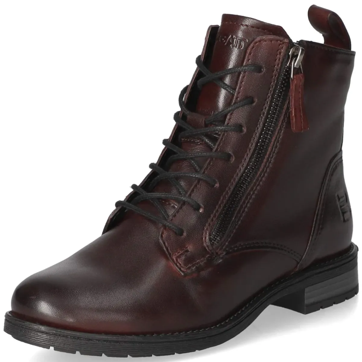 Die Schnürstiefeletten von TT.Bagatt setzen mit sattem Rot ein klares Statement und verbinden urbanen Look mit Komfort. Das Obermaterial aus robustem Glattleder zeigt sich langlebig, die runde Kappe unterstreicht den zeitlosen Charakter. Ein 3 cm hoher Blockabsatz bietet stabilen Stand, die flexible, rutschfeste Laufsohle gibt Halt auf wechselndem Untergrund. Innen verwöhnt ein leichtes Futter an kühlen Tagen, die Decksohle aus Textil liegt angenehm am Fuß. Dank Schnürung und seitlichem Reißverschluss gelingt der Einstieg mühelos; ein zusätzlicher Reißverschluss, eine Anziehlasche sowie ein kleiner Elastikeinsatz am Schaft erhöhen die Bequemlichkeit. Die verstärkte Ferse mit dezentem Markendruck sorgt für Form und Stil. Die Passform fällt normal aus und macht die Stiefelette zum unkomplizierten Allrounder. Modetipp: Zu Wollmantel und schmaler Denim kommt das Rot besonders wirkungsvoll zur Geltung.