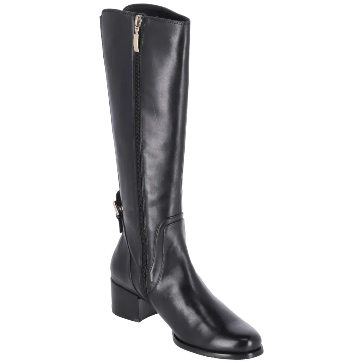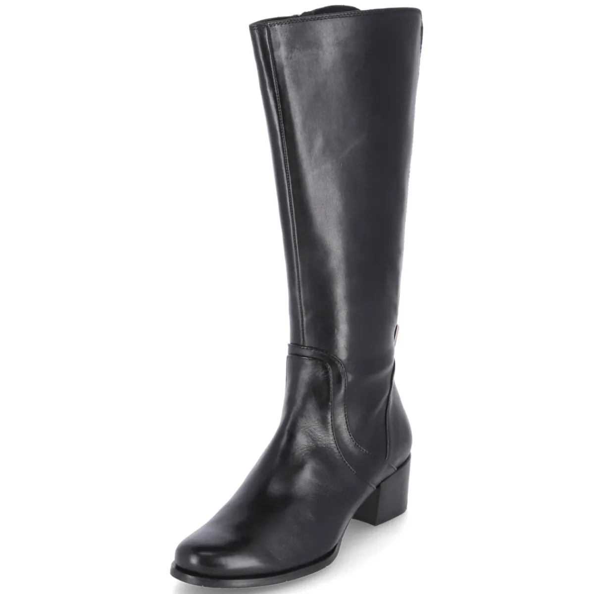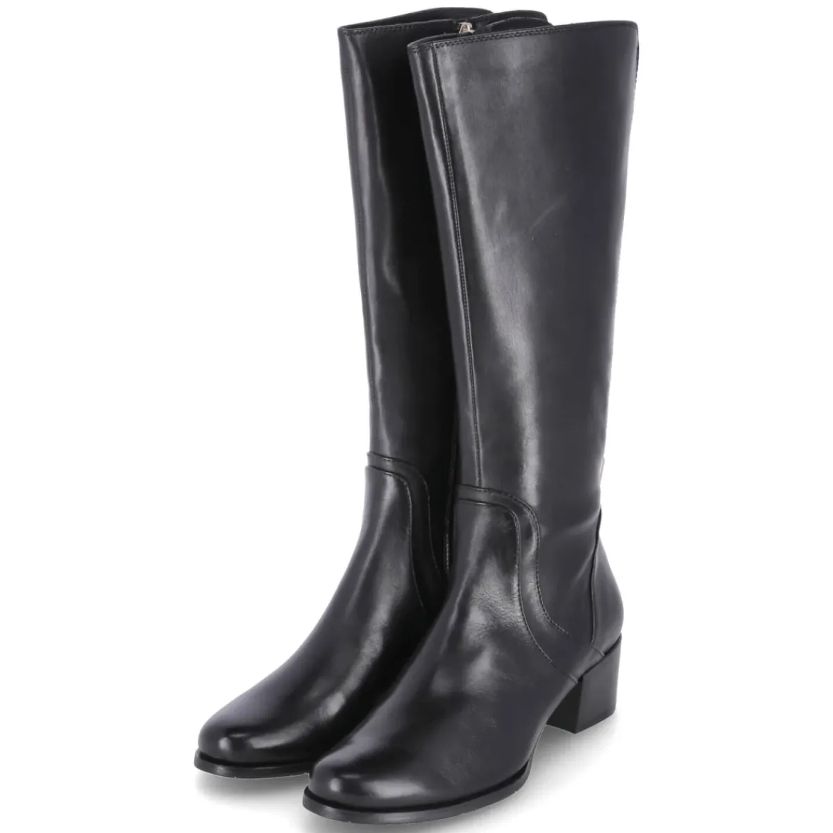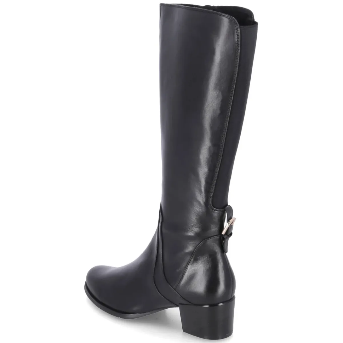 Der Stiefel JOLENE 22 von Kaerlek verbindet urbanen Chic mit verlässlichem Komfort. Schwarzes Glattleder und eine runde Spitze verleihen zeitlose Eleganz, goldglänzende Metallelemente und eine Zierschnalle setzen edle Akzente. Der 5,5 cm hohe Blockabsatz sorgt für Stabilität, die flexible, rutschhemmende Laufsohle für souveränen Tritt. Ein komfortabler Reißverschlußeinstieg und der hinten integrierte Elastikeinsatz erleichtern das Anziehen und optimieren die Passform; der Varioschaft passt sich unterschiedlichen Waden an. Leichtes Fleecefutter und ein Fleece-Fußbett halten warm an kühleren Tagen, das Wechselfußbett sowie die Decksohle aus Textil & Synthetik unterstützen angenehmes Klima. Eine verstärkte Ferse erhöht die Langlebigkeit des Echtleders. Modetipp: Harmoniert besonders schön mit Midikleid und Wollmantel, dazu blickdichte Strümpfe für eine schlanke Silhouette.