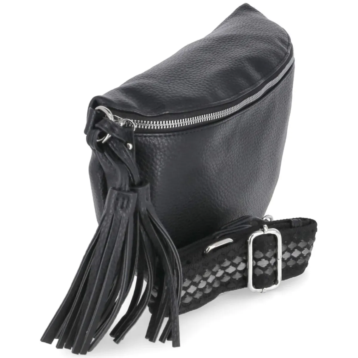 Schwarz, kompakt und doch erstaunlich geräumig: Diese Umhängetasche begleitet elegante City-Looks ebenso souverän wie entspannte Wochenend-Outfits. Mit Maßen von ca. 17 x 33 x 9 cm fasst sie etwa 3 Liter und bewahrt Essentials sicher im Reißverschlusshauptfach auf. Innen sorgen ein Reißverschlussfach und ein Steckfach für strukturierte Ordnung. Der abnehmbare, verstellbare Schultergurt mit ca. 130 cm Länge passt sich flexibel an, während der Quasten-Anhänger dem klaren Design eine dynamische Note verleiht. Als Crossbody Bag getragen bleibt alles nah am Körper und gut erreichbar; der Reißverschlussabschluss schützt zuverlässig. Modetipp: Für einen modernen Kontrast zu femininen Silhouetten die Tasche zu einem fließenden Midikleid und kantigen Loafern kombinieren, den Gurt so einstellen, dass sie knapp oberhalb der Hüfte sitzt, und den Quasten-Akzent mit dezentem Schmuck aufnehmen.