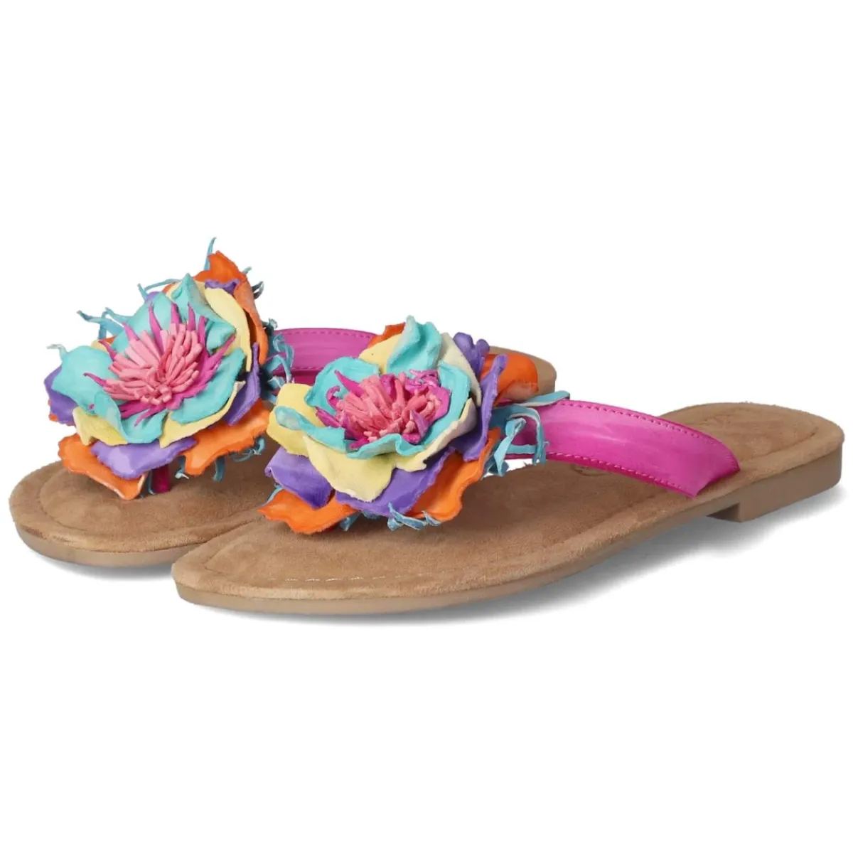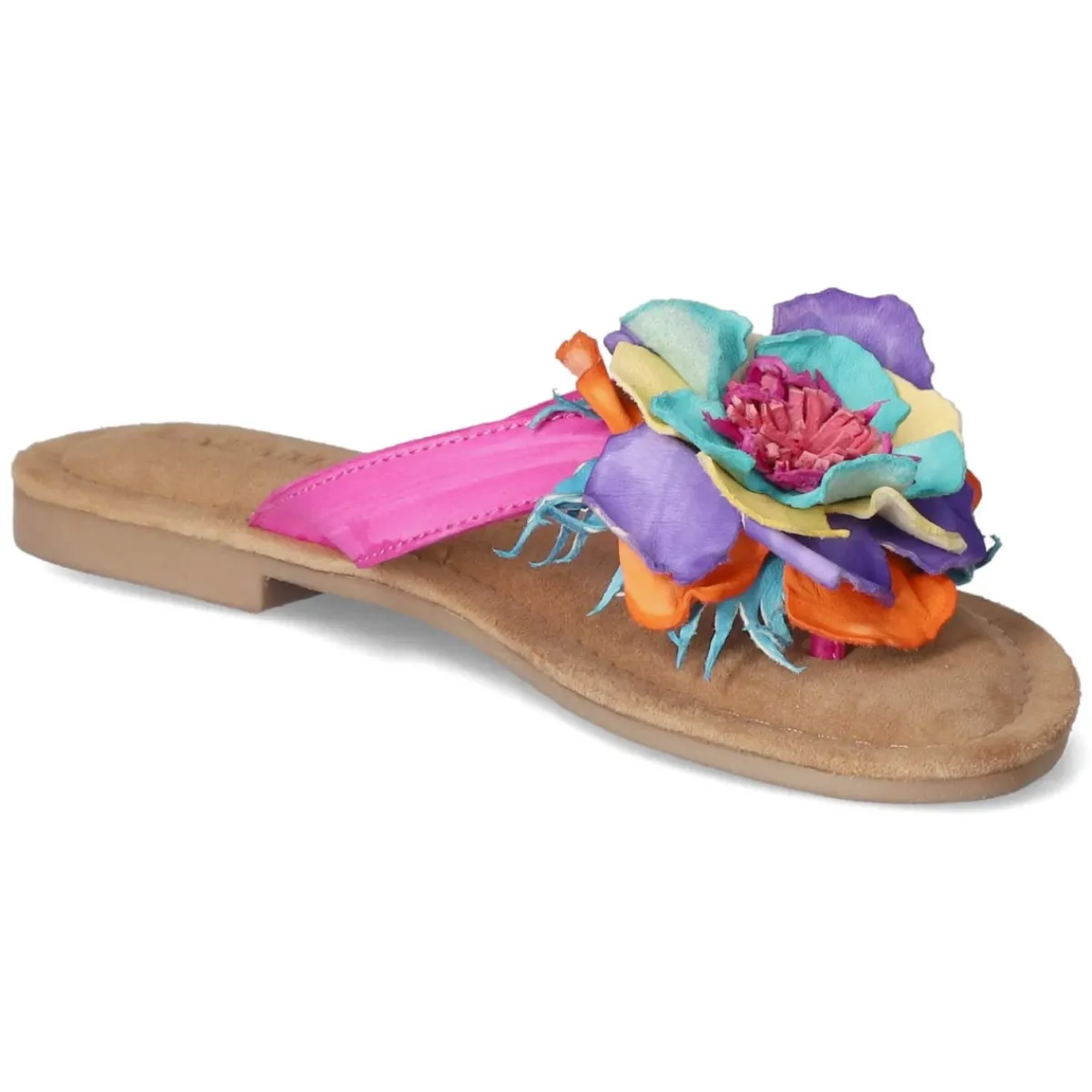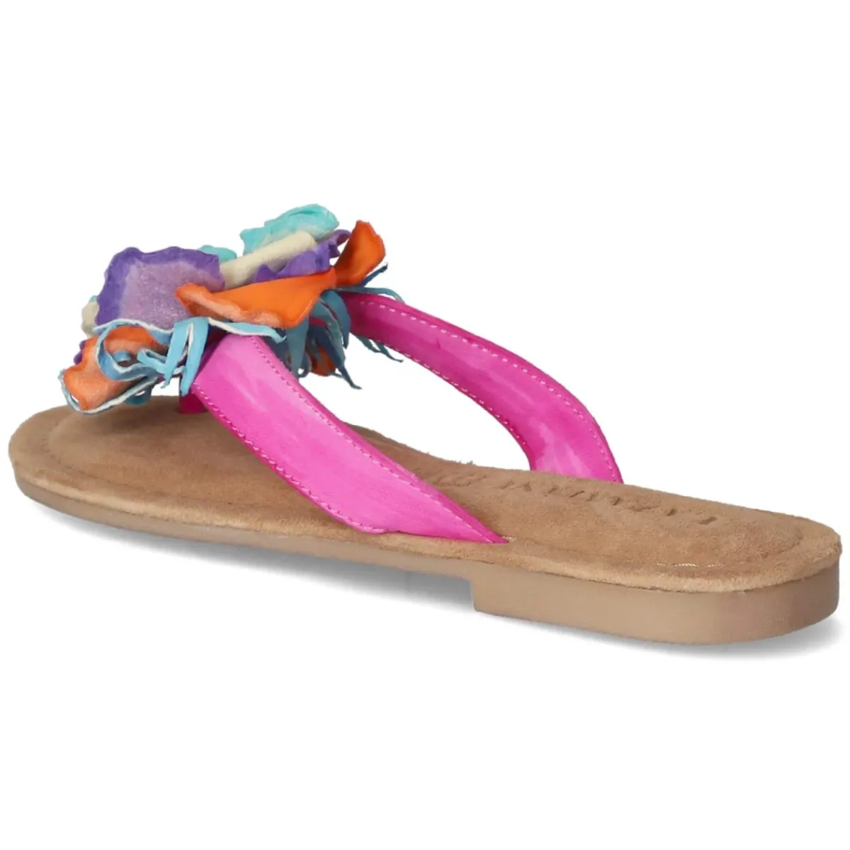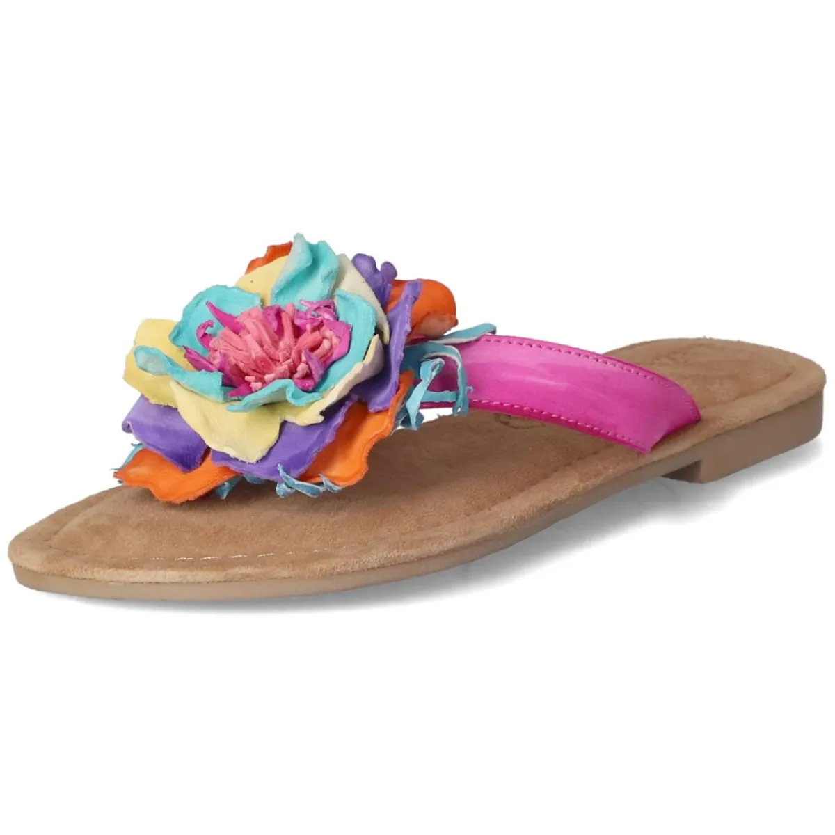 Der Zehentrenner von LAZAMANI verbindet edle Optik mit durchdachtem Komfort. Das Obermaterial aus atmungsaktivem Echtleder zeigt sich in lebhaftem Pink und bildet mit der runden Schuhspitze eine feminine Silhouette. Eine große, mehrfarbige Blüte auf dem Zehenbereich setzt einen kunstvollen Blickfang, der Sommer-Outfits aufwertet. Die Decksohle aus Leder schmiegt sich angenehm an, während das gepolsterte Fußbett entspanntes Gehen ermöglicht. Dank ohne Verschluss gleitet der Fuß mühelos hinein; die flexible, rutschhemmende Laufsohle sorgt für zuverlässigen Halt auf verschiedenen Untergründen. Das Modell fällt normal aus und eignet sich ideal für warme Tage – von der Promenade bis zum Stadtbummel. Modetipp: Zu weißer Leinenhose und pastellfarbiger Tunika entsteht ein frischer, eleganter Look.