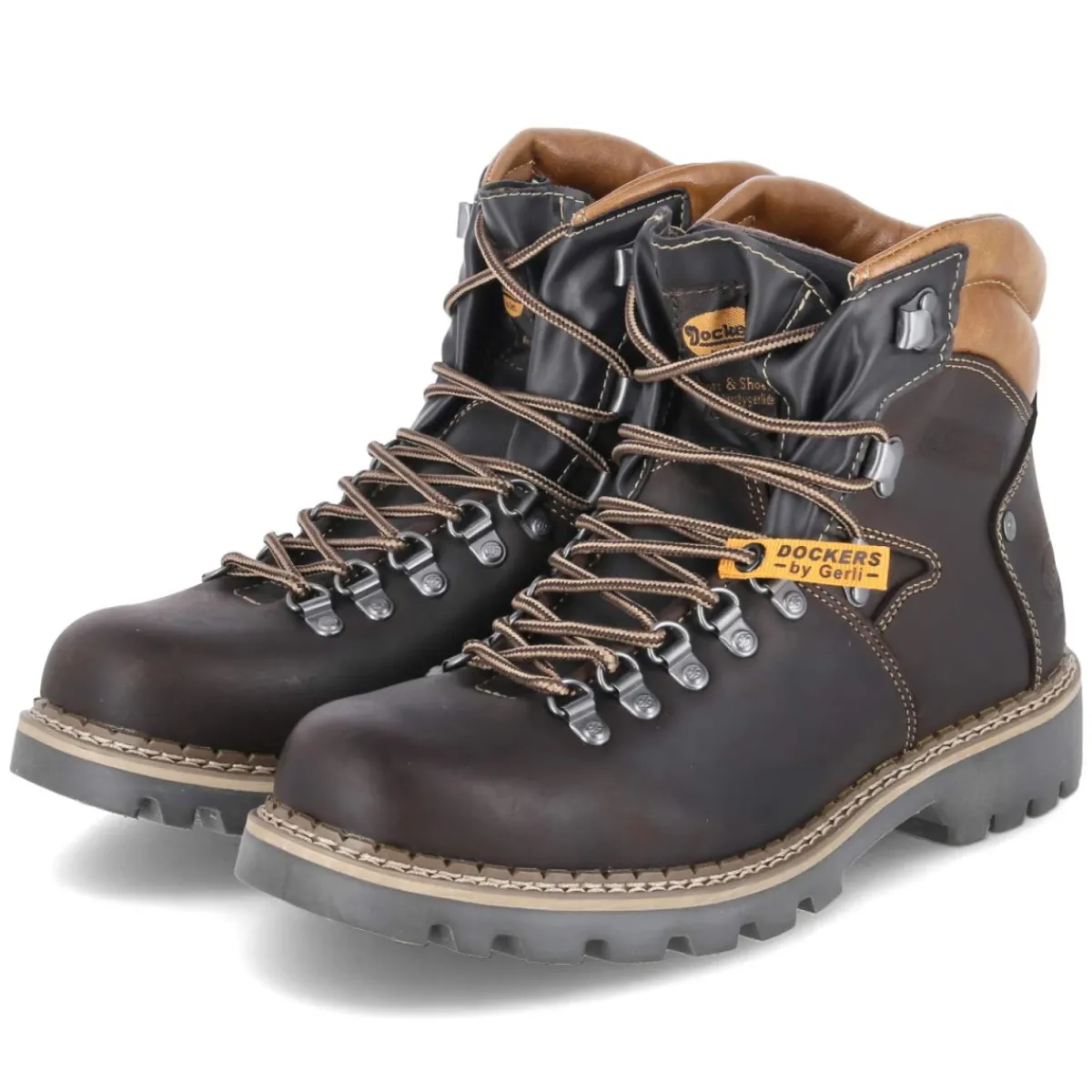 Der Herren-Boot von Dockers kombiniert robuste Funktion mit zeitloser Optik. Schwarzes, geöltes Glattleder sorgt dank wasserfester und atmungsaktiver Eigenschaften für ein verlässliches Klima, während der gepolsterte Einstieg in Hellbraun einen angenehmen Akzent setzt. Die weich gepolsterte Textildecksohle unterstützt den Fuß auf langen Wegen, der 3 cm hohe Blockabsatz und die rutschfeste Profilsohle bieten Stabilität auf nassem Untergrund. Eine runde Spitze und der verstärkte Fersenbereich erhöhen den Tragekomfort, die Schnürung erlaubt eine präzise Anpassung. Fällt normal aus und begleitet Erwachsene souverän durch Stadt und Natur. Modetipp: Mit Raw-Denim, Wollsocken in Melange und einem dunklen Parka entsteht ein lässiger Heritage-Look, der den Kontrast zum hellbraunen Schaftabschluss stilvoll aufgreift.