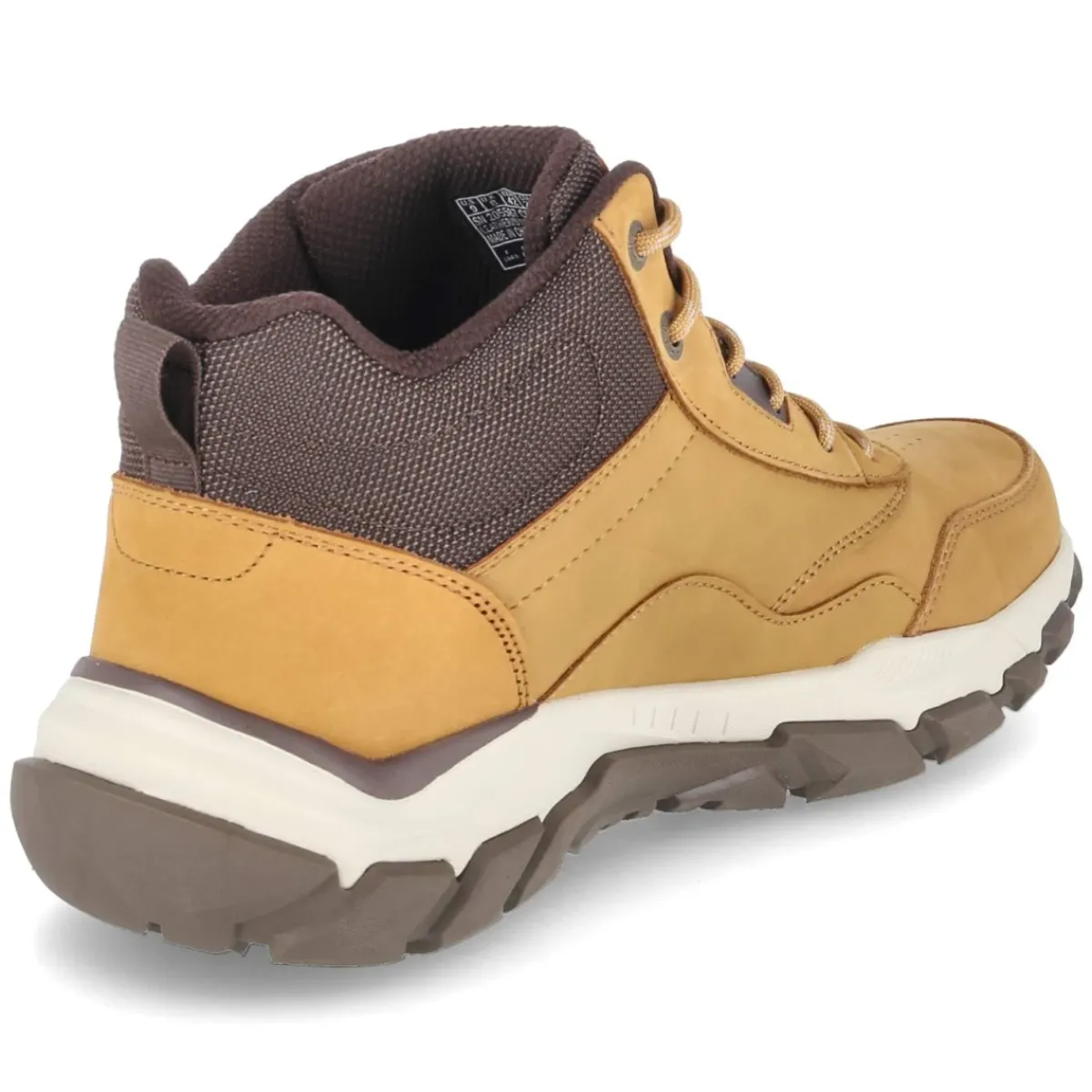 Der SANTORO von Skechers verbindet einen robusten Material-Mix aus Leder und Synthetik mit sportlicher Optik und souveränem Komfort. Die runde Schuhspitze und der klassische Schnürverschluss sorgen für eine sichere Passform, während der gepolsterte Einstieg und die Anziehlasche den Einstieg erleichtern. Herzstück ist die beste Memory-Foam-Fußbettung, die den Fuß angenehm aufnimmt und auch an langen Tagen für spürbare Entlastung steht. Die textile Decksohle ergänzt das weiche Tragegefühl, der verstärkte Fersen- und Zehenbereich erhöht die Strapazierfähigkeit. Auf Asphalt wie auf leichtem Gelände überzeugt die flexible, rutschhemmende GOODYEAR-Profilsohle mit griffigem Halt. Das dezente Branding und der vielseitige Beigeton machen den Boot zum vielseitigen Begleiter mit regulärer Passform. Modetipp: Besonders stark zu Cargohose, grobem Strick und Parka in Natur- oder Olivtönen.