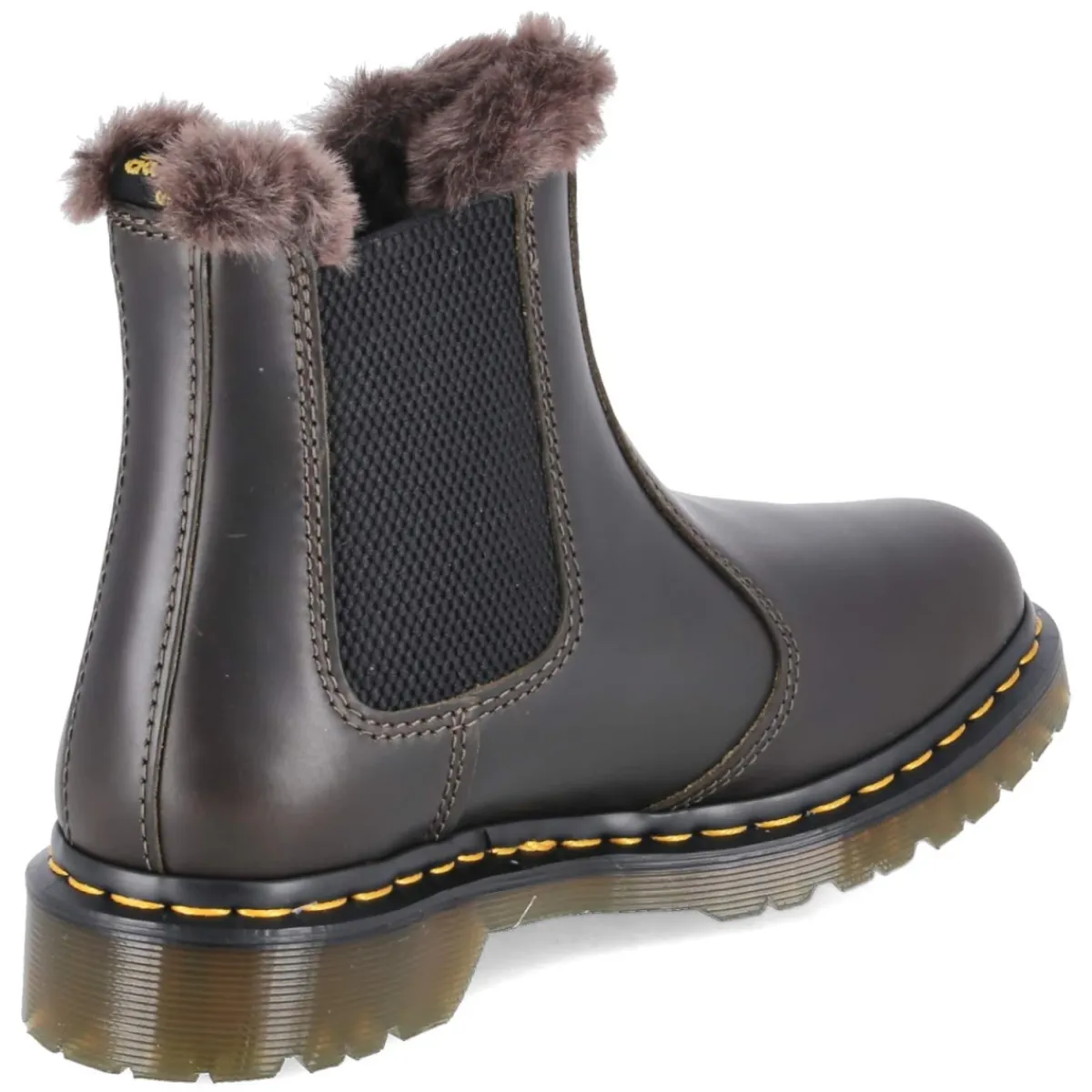 Der Dr. Martens Chelsea Boot 2976 LEONORE vereint ikonisches Design und wintertauglichen Komfort. Das Obermaterial aus langlebigem Glattleder zeigt sich in einem satten Braun mit Markendetails, während zwei große, seitliche Elastikeinsätze und die praktische Anziehlasche den bequemen Einstieg ohne Verschluss ermöglichen. Weiches, warmes Kunstfell und Warmfutter umschließen den Fuß, die textile Decksohle und das herausnehmbare Wechselfußbett sorgen für angenehme Dämpfung. Die runde Spitze und der 3 cm hohe Blockabsatz bieten Alltagstauglichkeit, die rutschfeste Profilsohle liefert Halt auf kaltem Untergrund. In normaler Passform konzipiert, begleitet der 2976 LEONORE Erwachsene stilsicher durch die Saison. Modetipp: Zu einem dunklen Strickkleid, blickdichten Strümpfen und einem oversized Wollmantel entsteht ein mühelos eleganter Look, der die dunkle Braunnuance harmonisch aufgreift.