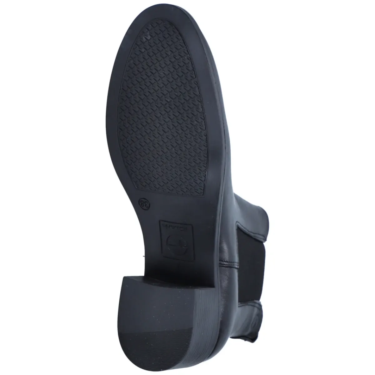 Die Chelsea Boots von Tamaris verbinden zeitlosen Chic mit alltagstauglichem Komfort. Das schwarze Obermaterial aus Leder und Textil setzt auf einen modernen Material-Mix, während die runde Spitze und der 5 cm hohe Blockabsatz eine feminine, standfeste Silhouette formen. Zwei seitliche Elastikeinsätze und eine praktische Anziehlasche ermöglichen ein müheloses Hineinschlüpfen ohne Verschluss. Die textile Decksohle und das gepolsterte Fußbett sorgen für angenehme Dämpfung, die verstärkte Ferse gibt Halt. Eine flexible Laufsohle mit leichtem Profil bietet zuverlässige Traktion im urbanen Alltag. Dezente Markendetails runden den minimalistischen Look ab. Fällt größengetreu aus und begleitet stilvoll durch Büro, City und Abendprogramm. Modetipp: Zu knöchelfreier Straight-Jeans und Oversize-Wollmantel kombinieren, dazu ein schmaler Ledergürtel in Schwarz für einen ruhigen, eleganten Gesamtlook.