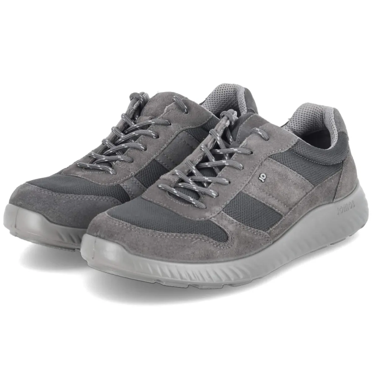 Der Herren-Halbschuh von Jomos in Grau verbindet sportliche Optik mit zuverlässigem Komfort. Das Obermaterial aus Leder und Textil bildet einen robusten Material-Mix, der sich an den Fuß anpasst und den Alltag souverän meistert. Die abgerundete Schuhspitze bietet Zehenfreiheit, ein verstärkter Fersen- und Zehenbereich erhöht die Formstabilität. Dank gepolstertem Einstieg und weichem, gepolstertem Fußbett gelingen lange Tage mühelos; die textile Decksohle unterstützt ein angenehmes Fußklima. Ein Wechselfußbett erlaubt die Nutzung eigener Einlagen. Die flexible, rutschfeste Laufsohle sorgt für sicheren Tritt, während der Schnürverschluss den Sitz präzise reguliert. Der Schnitt fällt normal aus und erfüllt damit gängige Passformen. Modetipp: Zu grauen oder navyfarbenen Chinos und einem melierten Strickpullover entsteht ein cleaner City-Look; für den Freizeitstil passt eine dunkle Denim mit leichter Steppjacke.