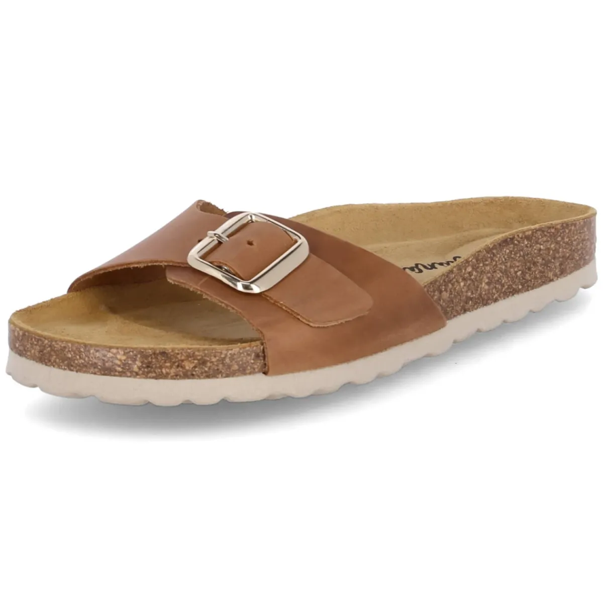 Die Pantoletten von Beliana vereinen lässige Eleganz und Komfort in einem zeitlosen Braunton. Weiches Rauleder schmiegt sich an den Fuß, während ein Riemen mit Schnalle in Goldoptik den Look veredelt und gleichzeitig individuell regulierbar macht. Das vorgeformte, weiche Kork-Tieffußbett mit Lederbezug unterstützt die natürliche Fußform, das gepolsterte Fußbett sorgt für entspanntes Gehen über den ganzen Tag. Eine profilierte EVA-Laufsohle bietet leichte Dämpfung und verlässlichen Halt, die offene Schuhspitze betont sommerliche Leichtigkeit. Robustes Echtleder unterstreicht die Langlebigkeit und macht das Modell zu einem vielseitigen Begleiter mit besonders guten Kombinationsmöglichkeiten. Modetipp: Zu Leinenkleidern in Naturtönen und filigranem Goldschmuck entsteht ein harmonischer Ton-in-Ton-Look, der die goldene Schnalle stilvoll aufgreift.