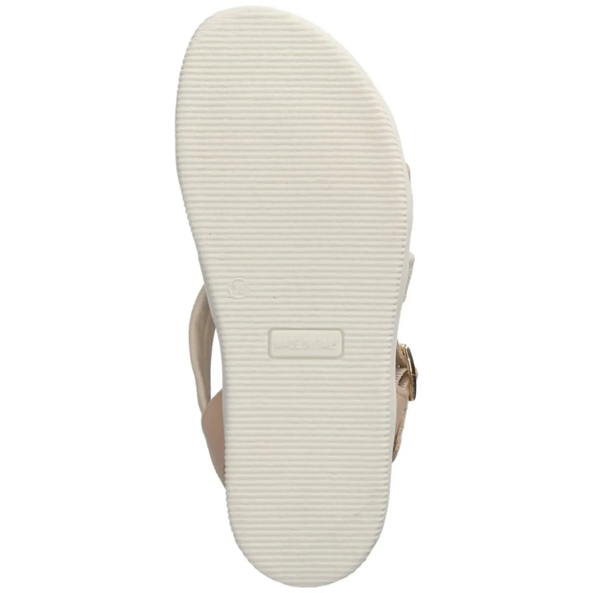 Die Beliana Sandalen in Taupe vereinen zeitlose Linien mit komfortorientierten Details. Das klassische Modell setzt auf runde Schuhspitze und elegant gekreuzte Zierriemen, die dem Fuß sicheren Halt geben. Obermaterial aus Leder und Synthetik wirkt hochwertig und zugleich pflegeleicht, die goldfarbene Schnalle mit Elastikeinsatz sorgt für flexiblen Spielraum beim Gehen. Durch das leicht vorgeformte, gepolsterte Fußbett und die textile Decksohle bleibt der Tragekomfort auch an langen Tagen angenehm hoch. Die flexible, rutschfeste Sohle unterstützt einen stabilen Auftritt, während die Passform verlässlich normal ausfällt. Das sanfte Taupe lässt sich vielseitig kombinieren – vom Wochenendlook bis zur Abendgarderobe. Modetipp: Taupe harmoniert besonders schön mit Naturtönen und Goldschmuck; ein Leinenkleid oder Cropped-Jeans und ein feiner Gürtel in ähnlicher Nuance runden den Look ab.