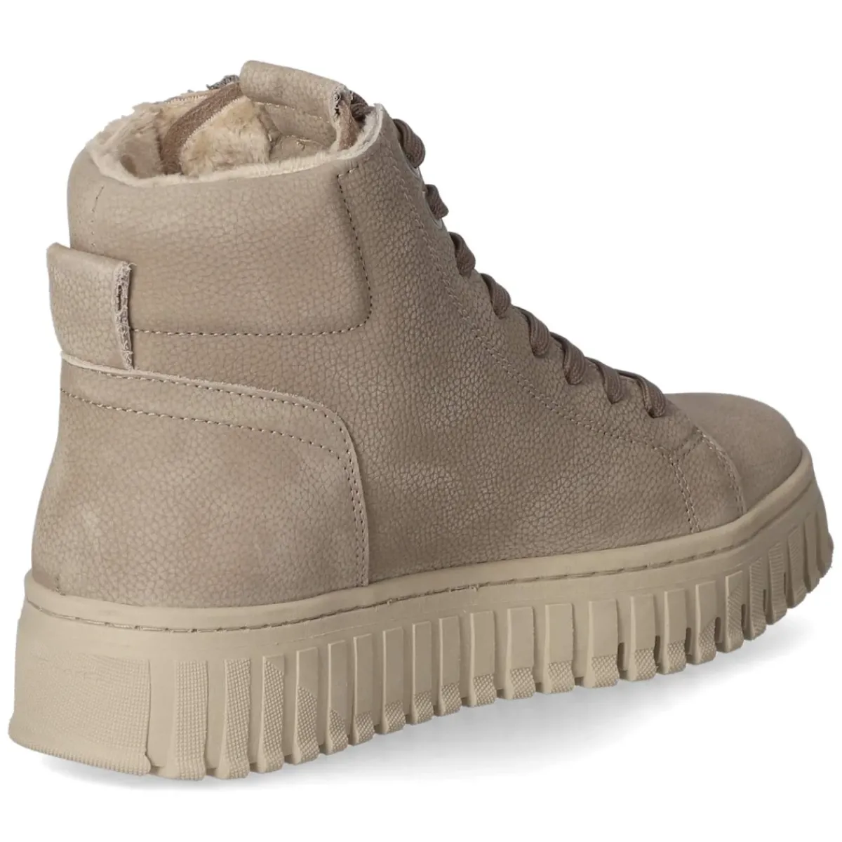 Diese Schnürstiefeletten von Tamaris in elegantem Taupe vereinen urbanen Stil und angenehmen Komfort. Das sehr weiche Rauleder schmiegt sich sanft an, während die runde Spitze und die 4 cm hohe Plateau-Absatzform für eine harmonische Silhouette sorgen. Durch Schnürsenkel und seitlichen Reißverschluss gelingt der Einstieg mühelos; Anziehlasche und verstärkte Ferse erhöhen die Alltagstauglichkeit. Das leichte Futter hält an kühlen Tagen warm, ohne aufzutragen. Eine textile Decksohle sowie das auswechselbare Wechselfußbett unterstützen entspanntes Gehen. Die rutschfeste Plateausohle bietet sicheren Halt, Markendetails setzen dezente Akzente. Fällt normal aus und passt damit unkompliziert zu vielen Outfits. Modetipp: Zu verkürzten Mom-Jeans und Oversize-Strickpullover kombinieren oder als soften Kontrast zu einem fließenden Midikleid und Wollmantel in Creme tragen.