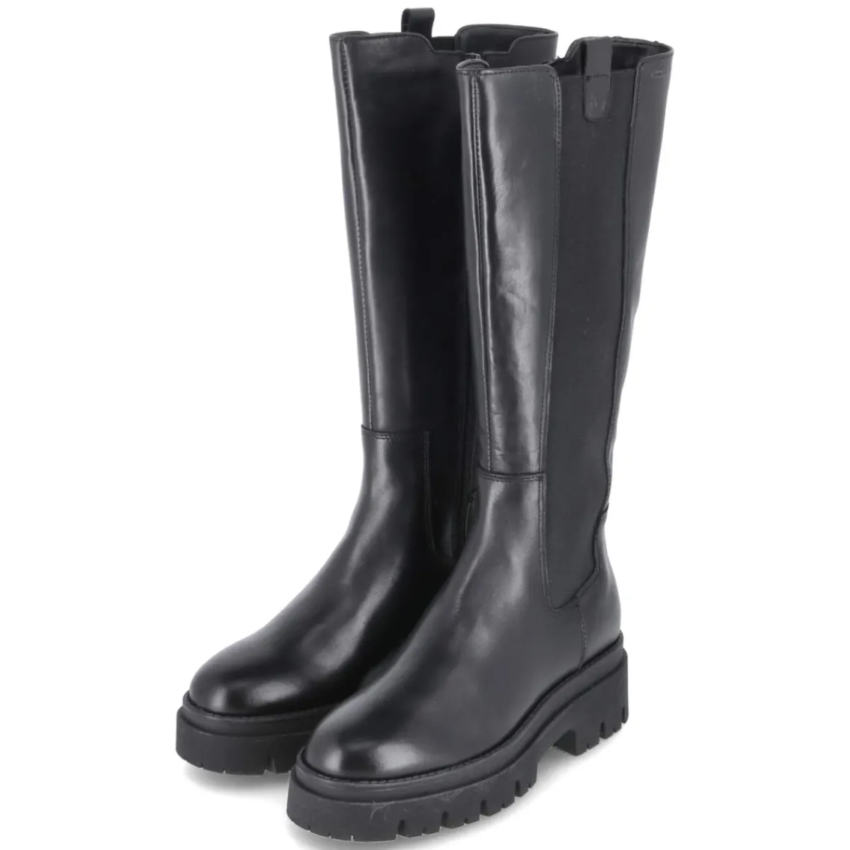 Der schwarze Stiefel von Tamaris vereint klare Linien und hohen Komfort in einem alltagstauglichen Design. Glattes, langlebiges Echtleder verleiht eine edle Anmutung, während die runde Schuhspitze und das gepolsterte Fußbett ein angenehmes Tragegefühl unterstützen. Praktisch: Der seitliche, Chelsea-ähnliche Elastikeinsatz mit Anziehlasche erleichtert das Hineinschlüpfen, der Reißverschluss sorgt für sicheren Halt. Die rutschfeste Profilsohle und der 5 cm hohe Blockabsatz bieten Stabilität, der Schaft misst ca. 35 cm in der Höhe und 36 cm im Umfang. Die Decksohle aus Textil und Synthetik unterstützt den Komfort auch bei längeren Wegen. Der Schnitt fällt normal aus und passt zu vielen Outfits. Modetipp: Zu einem Midikleid aus Strick und einem strukturierten Wollmantel entsteht ein eleganter Look; mit dunkler Slim-Jeans und Oversize-Blazer wirkt die Silhouette modern und urban.