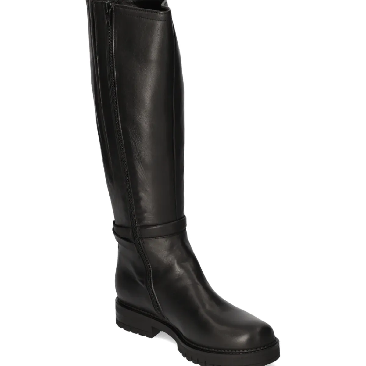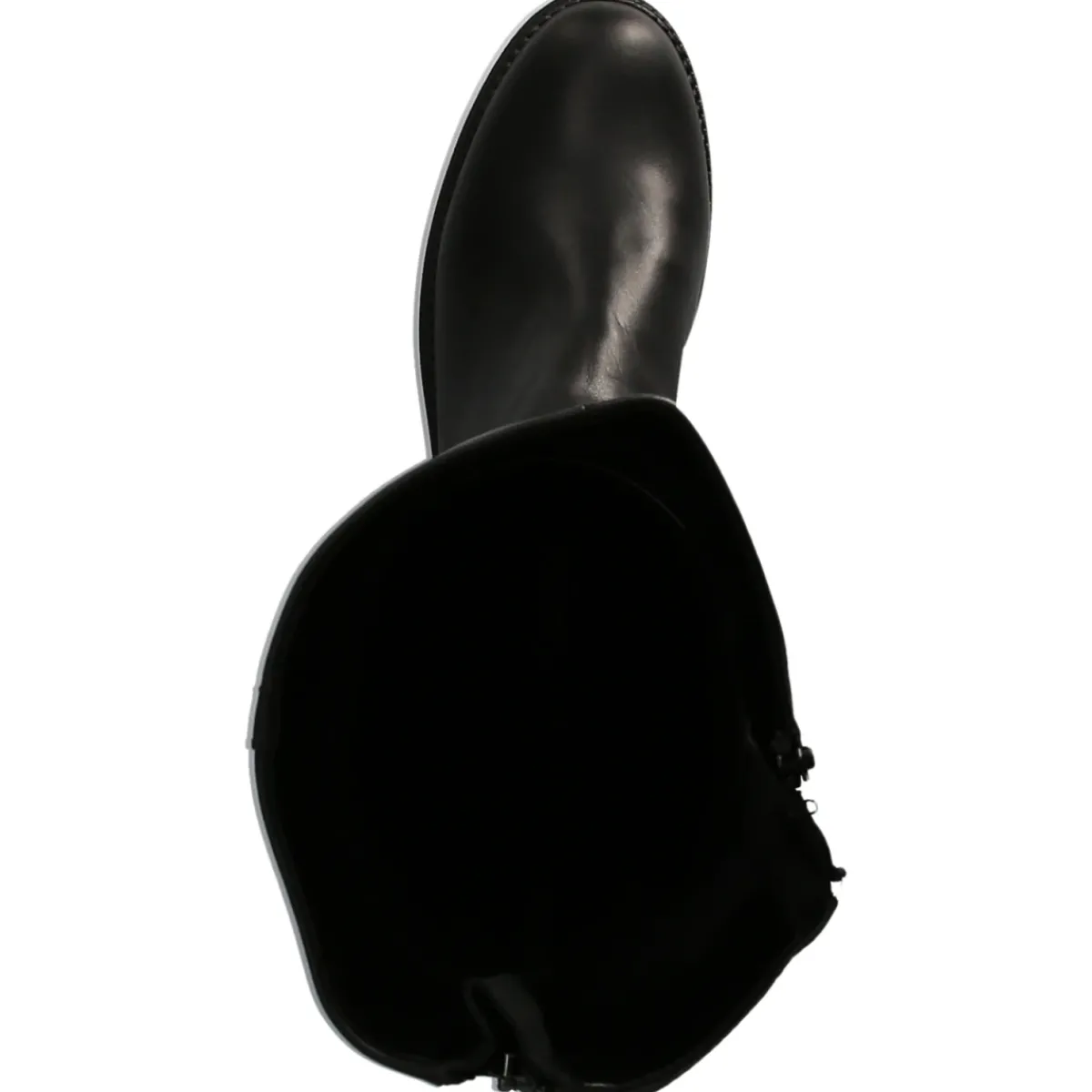 Eleganter Damenstiefel von Gabor in klassischem Schwarz, gefertigt aus langlebigem Echtleder mit glatter Oberfläche. Der 3 cm hohe Blockabsatz und die rutschfeste Profilsohle sorgen für sicheren Stand, während die runde Schuhspitze und das gepolsterte, herausnehmbare Fußbett langanhaltenden Komfort bieten. Ein bequemer Reißverschlußeinstieg erleichtert das Anziehen, zusätzlich ermöglicht ein rückseitiger Reißverschluss die Schafterweiterung. Ein schmaler Elastikeinsatz seitlich optimiert die Passform, die textile Decksohle und das leichte Futter wärmen an kühlen Tagen. Mit Schaftweite L und Maßen von ca. 40 cm Höhe x 38 cm Umfang passt der Stiefel zu normal ausfallenden Größen. Eine Anziehlasche rundet die praxisnahe Ausstattung ab. Modetipp: Ein stilvoller Begleiter zu Midikleid und Wollmantel, ergänzt um eine blickdichte Strumpfhose und eine Ton-in-Ton-Ledertasche für einen harmonischen City-Look.