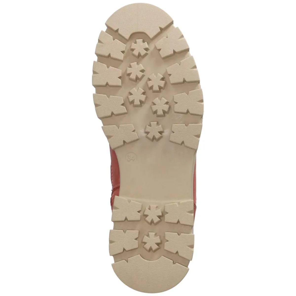 Robuste Wärme für kalte Schultage: Die roten Winterstiefeletten von Däumling verbinden wetterfeste Leistung mit bequemem Tragegefühl. Das weiche Rauleder umschließt eine warme Textilfütterung, während die TEX-Ausstattung wasserfest und atmungsaktiv schützt. Schnürsenkel und seitlicher Reißverschluss ermöglichen einen schnellen Einstieg und eine passgenaue Fixierung; die Anziehlasche erleichtert das Handling zusätzlich. Eine gepolsterte Wechseldecksohle schafft angenehme Dämpfung und lässt sich bei Bedarf durch eigene Einlagen ersetzen. Der rutschhemmende Profilboden mit 3 cm Blockabsatz sorgt für Trittsicherheit, die runde Spitze und der verstärkte Fersenbereich geben Halt bei langen Wegen. Dezente Markendetails und Ziernähte setzen einen modischen Akzent. Größenhinweis: fällt normal aus. Modetipp: Perfekt zu Thermojeans, Strickmütze und einem Parka in Naturtönen – das leuchtende Rot setzt den frischen Farbtupfer.