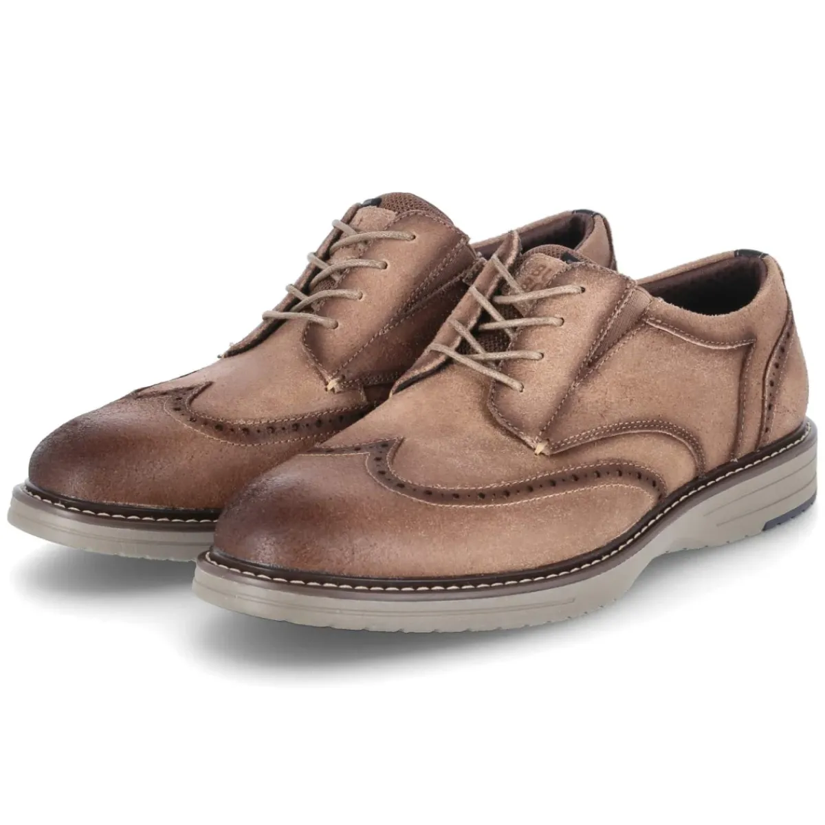 Klassischer Auftritt mit entspannter Leichtigkeit: Der Bullboxer Halbschuh aus hochwertigem Rauleder überzeugt mit langlebigem Echtleder und markantem Budapester Lochmuster. Die runde Schuhspitze, die traditionelle Schnürung und das gelabelte Finish unterstreichen das zeitlose Design. Für Komfort sorgen ein komfortables, herausnehmbares Wechselfußbett und eine Decksohle aus Textil. Kleine Elastikkeile am Spann erleichtern den Einstieg, während der verstärkte Fersenbereich und der leicht gepolsterte Schaftrand sicheren Halt bieten. Die flexible Laufsohle mit leichtem Profil und rutschhemmendem Fersenelement liefert Stabilität bei geringem Gewicht. Handcrafted verarbeitet und für Herren konzipiert, fällt das Modell größengetreu aus. Modetipp: Zu schmal geschnittenen Chinos in Sand und einem strukturierten Navy-Sakko entsteht ein smarter Business-Casual-Look.