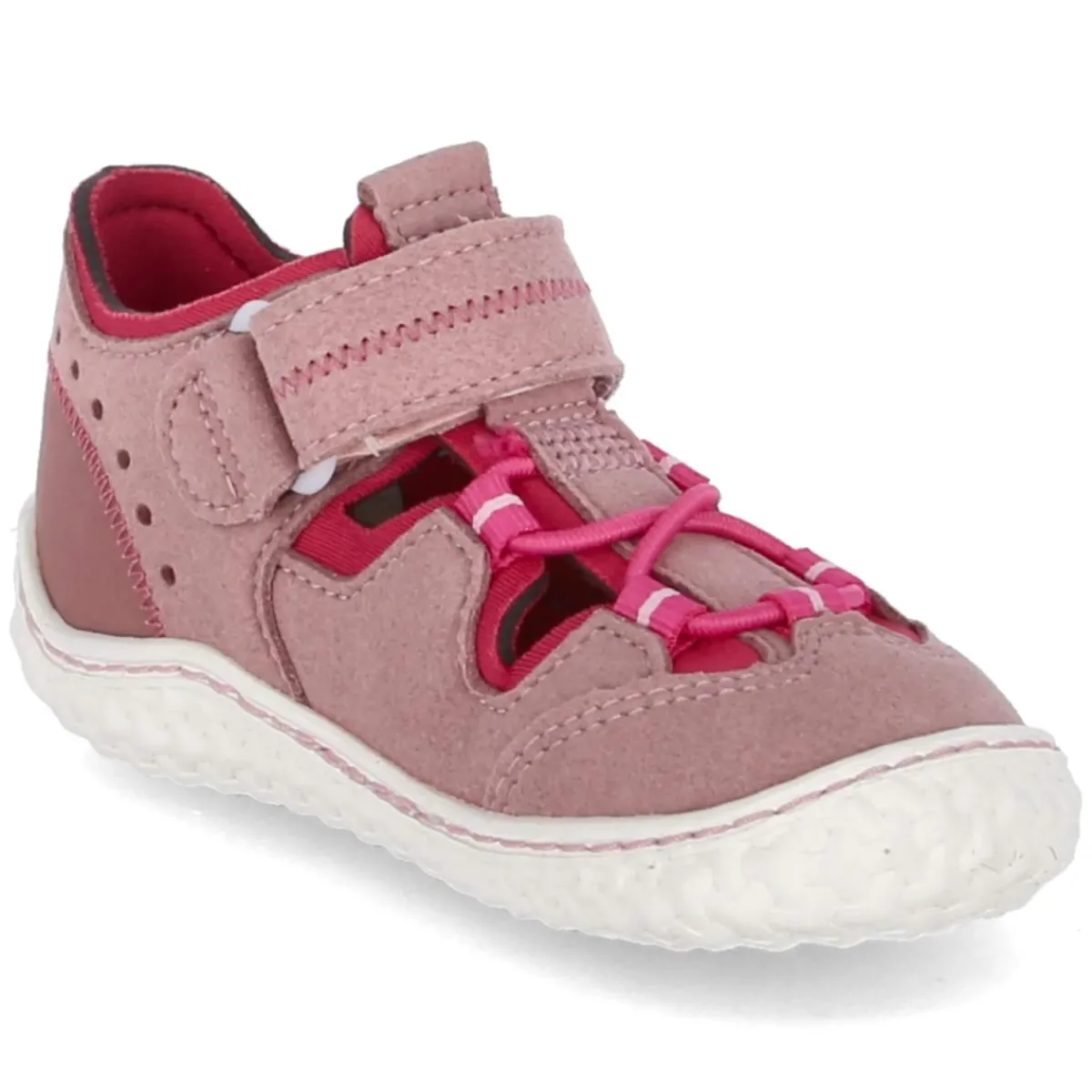 JERRY von Pepino ist ein kinderfreundlicher Kletthalbschuh, der Spielplatztauglichkeit mit Komfort verbindet. Das rosa Obermaterial aus Textil und Synthetik sitzt leicht am Fuß, während der runde Leisten und die weiche Textildecksohle für angenehmes Tragen sorgen. Die sehr flexible, rutschhemmende Laufsohle mit Zehenkappe bietet Halt auf unterschiedlichen Untergründen; verstärkter Zehen- und Fersenbereich schützt beim Toben. Der praktische Klettverschluss mit Elastikband in Schnüroptik erleichtert das An- und Ausziehen, Ziernähte und feine Lochungen geben eine lebendige Optik. Aus veganen Materialien gefertigt und waschmaschinengeeignet, bleibt der Schuh im Alltag pflegeleicht und überzeugt mit zuverlässiger Formstabilität. Gute Kombinationsmöglichkeiten machen JERRY zum Favoriten für Kita und Freizeit und die Passform fällt normal aus. Modetipp: Zu leichten Denim-Latzhosen und gerippten Socken in Pastell entsteht ein harmonischer Alltagslook.