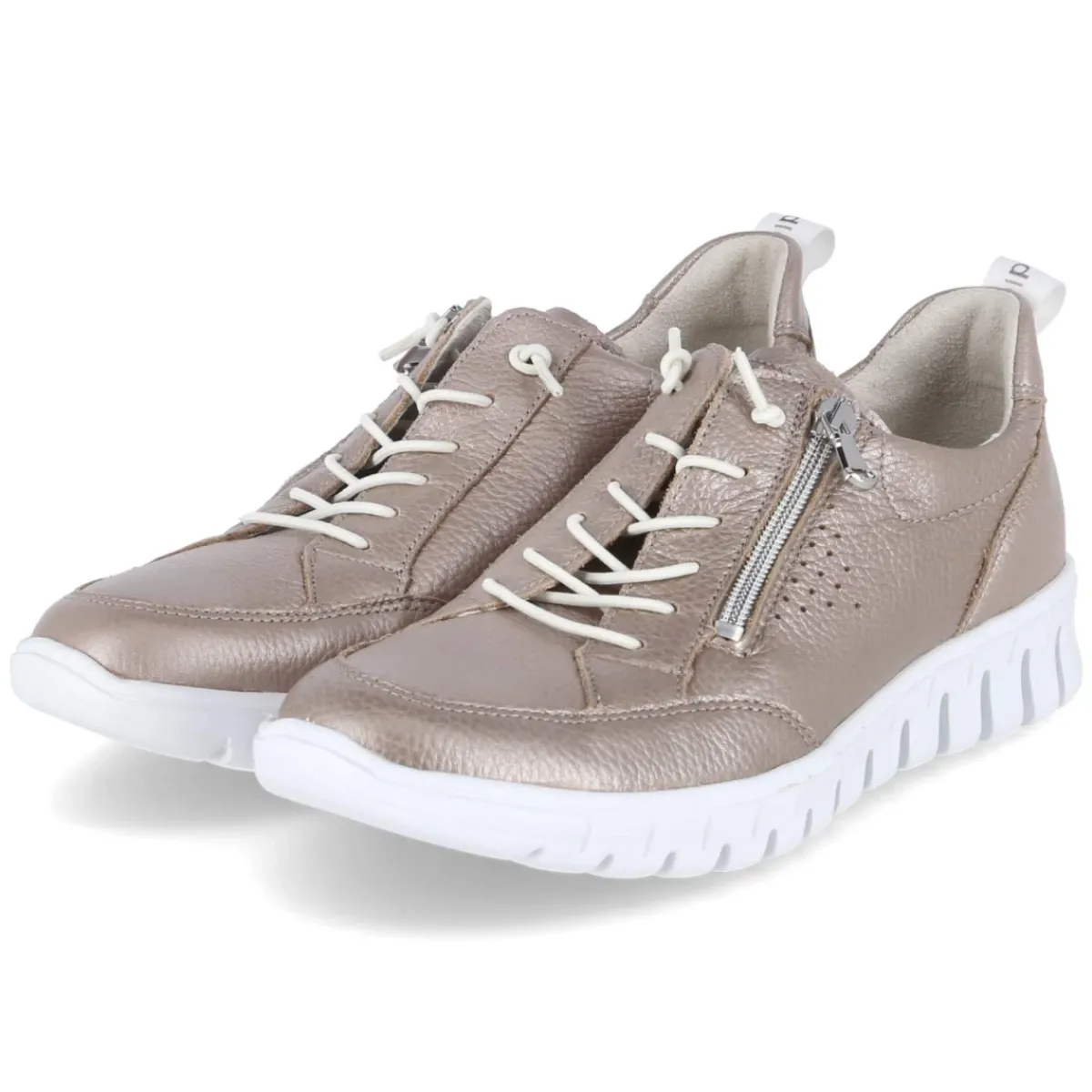 Der Low Sneaker BIRDY von Waldläufer vereint sportliche Leichtigkeit mit hochwertiger Verarbeitung. Zartes Rosa in Glattleder mit sanftem, metallischem Glanz setzt moderne Akzente, während die runde Schuhspitze und der leicht gepolsterte Einstieg ein angenehmes Tragegefühl bieten. Die Kombination aus Schnürung und Reißverschluss ermöglicht einen unkomplizierten Einstieg und sicheren Halt. Langlebiges Echtleder, verstärkte Zehen- und Fersenbereiche sowie die flexible, rutschhemmende Profilsohle sorgen für Alltagstauglichkeit bei geringem Gewicht. Die gepolsterte Wechseldecksohle mit Lederbezug und das komfortable Wechselfußbett erhöhen den Komfort, Größenhinweis: fällt normal aus. Modetipp: Besonders harmonisch zu hellen Straight-Jeans, einem feinen Strickpullover und Schmuck in Roségold für einen femininen City-Look.