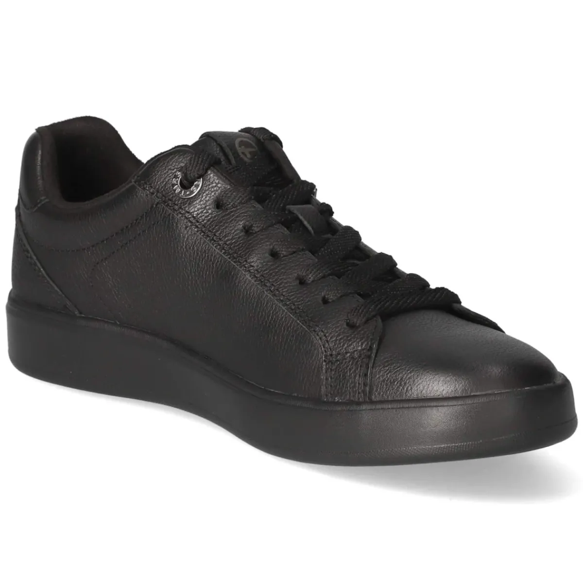 Der Low Sneaker von Tamaris in klassischem Schwarz vereint eine klare, urbane Silhouette mit durchdachtem Komfort. Der robuste Material-Mix aus Leder und Synthetik steht für Formstabilität und eine wertige Haptik, die runde Schuhspitze sorgt für angenehme Zehenfreiheit. Schnürsenkel und zusätzlicher Reißverschluss ermöglichen ein unkompliziertes An- und Ausziehen sowie passgenauen Halt, die Passform fällt normal aus. Ein komfortables Wechselfußbett auf synthetischer Decksohle unterstützt den Fuß und lässt sich bei Bedarf austauschen. Verstärkte Ferse, gepolsterter Einstieg und die flexible, rutschhemmende Laufsohle bieten verlässliche Stabilität auf diversen Untergründen. Dezenter Markenschriftzug unterstreicht den cleanen Look und macht den Sneaker vielseitig kombinierbar. Modetipp: Für einen modernen City-Style mit Cropped-Jeans, weißem Basic-Shirt und Oversize-Blazer tragen; für einen sportlich-eleganten Twist optional mit feinen Rippensocken akzentuieren.
