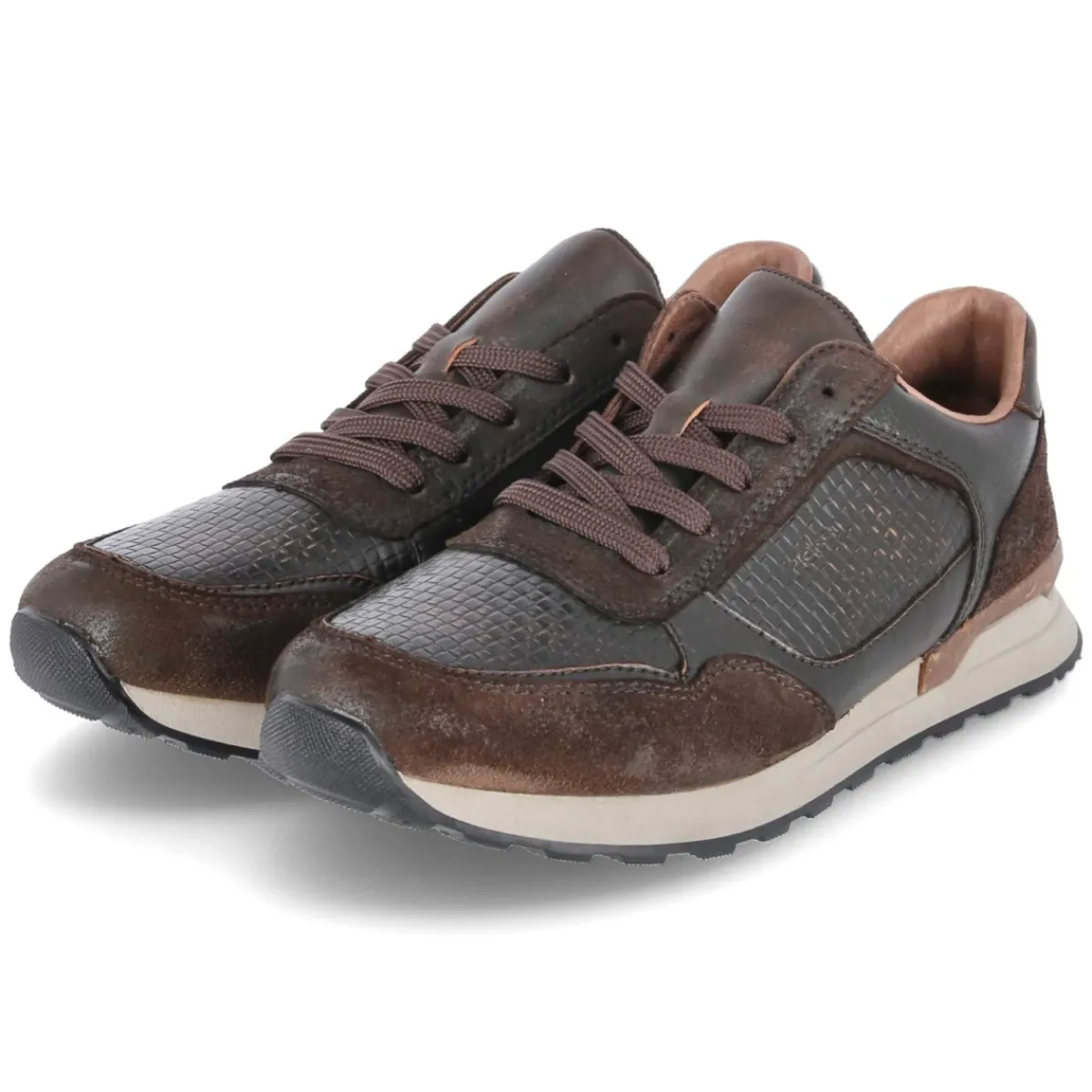 Der Low Sneaker von Rieker zeigt sich in warmem Braun und verbindet markanten Used-Look mit hochwertigem Glattleder. Langlebiges Echtleder und ein verstärkter Fersen- sowie Zehenbereich sorgen für Robustheit im Alltag, während das gepolsterte Fußbett und die Textildecksohle komfortable Schritte unterstützen. Die runde Schuhspitze und der klassische Schnürverschluss verleihen eine zeitlose Silhouette. Dank flexibler, griffiger Laufsohle bleibt der Auftritt sicher und geschmeidig. Das Wechselfußbett ermöglicht individuelle Einlagen, die Passform fällt normal aus. Dezente Partien mit Reptilprägung setzen moderne Akzente und erweitern die guten Kombinationsmöglichkeiten von Denim bis Chino. Modetipp: Ton-in-Ton mit braunem Ledergürtel und Strukturstrick kombinieren, dazu eine gekürzte Slim-Fit-Hose für einen lässig-smarten Auftritt.