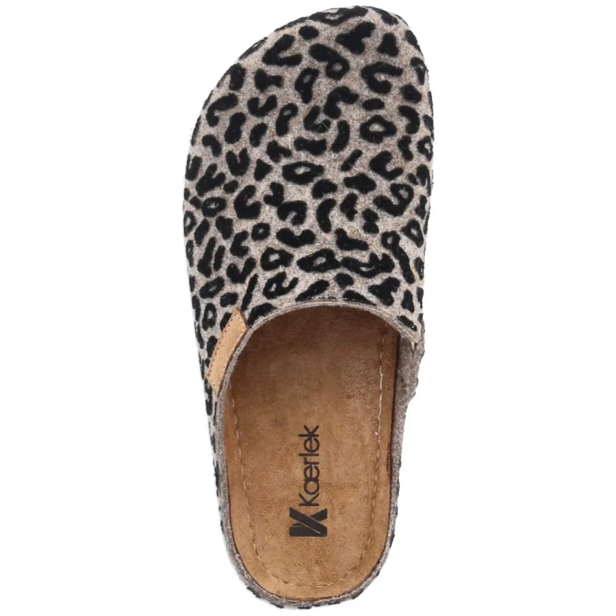 Kaerlek präsentiert mit den Pantoffeln NANA einen modernen Begleiter für entspannte Stunden. Das robuste Textilobermaterial aus Filz in Taupe harmoniert mit dem angesagten Leopardenmuster und verleiht dem Hausschuh eine moderne Optik. Die runde Schuhspitze bietet Zehenfreiheit, während der Elastikeinsatz am Spann für bequemen Halt sorgt und das Hineinschlüpfen erleichtert. Innen unterstützt eine vorgeformte, weich gepolsterte Decksohle aus Leder den Fuß, die flexible Laufsohle macht jeden Schritt angenehm leise. Das Modell fällt normal aus und richtet sich an erwachsene Damen, die Komfort und Stil verbinden möchten. Modetipp: Zu melierten Stricksets in Creme oder Sand kombiniert, unterstreicht der Animal Print den Look und setzt einen dezenten, modischen Akzent.