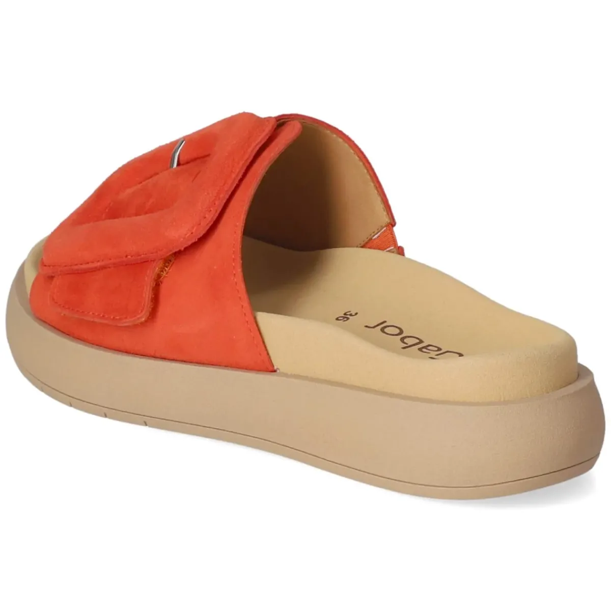 Diese Damen-Pantoletten von Gabor setzen in leuchtendem Orange ein frisches Sommerstatement und verbinden stilvolle Leichtigkeit mit Komfort. Das Obermaterial aus softem Rauleder umschmeichelt den Fuß, während atmungsaktives Echtleder für ein angenehmes Klima sorgt. Der offene Schnitt und der bequeme Klettverschluss erlauben individuelle Anpassung, das gepolsterte Fußbett unterstützt bei jedem Schritt. Eine Textil-Decksohle sorgt für zusätzliche Weichheit, die rutschhemmende Laufsohle gibt zuverlässigen Halt auf unterschiedlichen Untergründen. Praktisch im Alltag, citytauglich im Office und entspannt am Wochenende, fällt das Modell normal aus und lässt sich mühelos kombinieren. Modetipp: Zu einem cremefarbenen Leinenkleid, geflochtener Tasche und goldfarbenen Akzenten entsteht ein moderner Look, der die Orange-Nuance effektvoll in den Mittelpunkt stellt.
