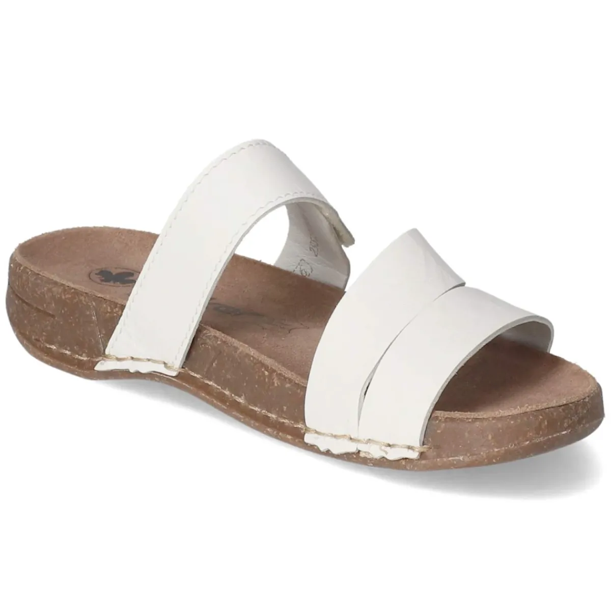 Die weißen Pantoletten von Rieker verbinden zeitlosen Minimalismus mit durchdachtem Komfort. Das Obermaterial aus hochwertigem Glattleder präsentiert sich strapazierfähig und anschmiegsam, während die Lederdecksohle zusammen mit dem weich gepolsterten Fußbett für ein angenehmes Trittgefühl sorgt. Der offene Zehenbereich lässt Luft zirkulieren, ideal für warme Tage, und der verstellbare Klettverschluss ermöglicht einen sicheren Sitz ohne Druckstellen. Eine flexible, griffig profilierte Laufsohle fördert natürliche Abrollbewegungen und verleiht Stabilität auf verschiedensten Untergründen. Dezente Markendetails runden den Look ab. Die Passform fällt normal aus und eignet sich sowohl für den Alltag als auch für Urlaubstage. Modetipp: Zu leichten Leinenhosen und einem monochromen Outfit kombinieren, um die frische Weißnuance elegant hervorzuheben.