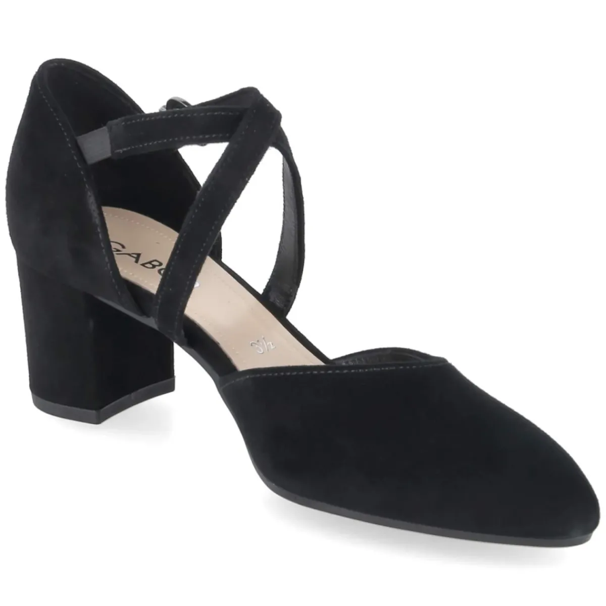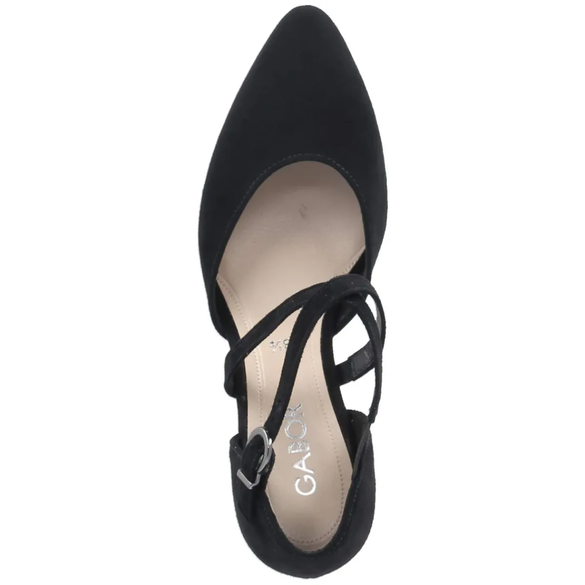 Gabor interpretiert den klassischen Damen-Pumps in edlem Schwarz mit spitzer Silhouette und samtiger Raulederoberfläche neu. Die gekreuzten Riemchen mit Elastikeinsatz schmiegen sich sicher über den Spann, während die Schnalle mit Druckknopf das Schließen angenehm unkompliziert macht. Ein 6 cm hoher Blockabsatz sorgt für stabile Eleganz, die flexible, rutschfeste Laufsohle gibt Halt auf glatten Böden. Innen verwöhnt ein weich gepolstertes Fußbett, die Decksohle aus Leder reguliert das Klima und erhöht den Tragekomfort. Der Schnitt fällt normal aus und passt sich dem Alltag ebenso an wie festlichen Momenten. Ein vielseitiger Begleiter, der durch klare Linien und hochwertige Verarbeitung überzeugt. Modetipp: Besonders wirkungsvoll zu einem schmalen Etuikleid oder zu Cropped-Culottes und einem feinen Stricktop, für einen modernen, femininen Auftritt.