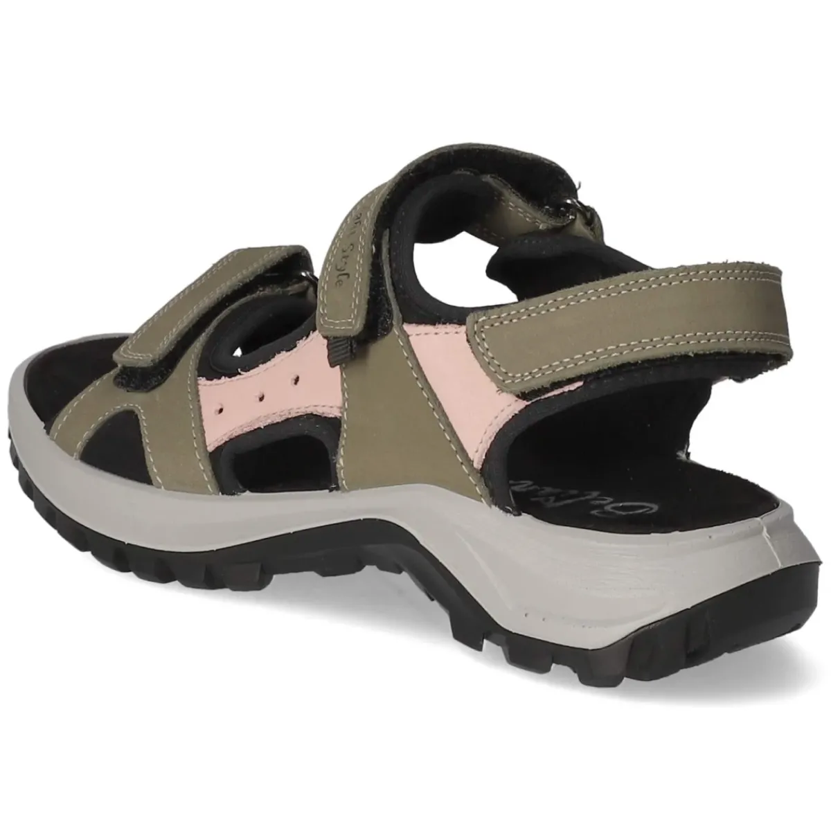 Beliana präsentiert eine grüne Damen-Sandale, die sommerliche Leichtigkeit mit verlässlichem Komfort verbindet. Die offene Schuhspitze unterstreicht das luftige Design, während rosafarbene Akzente dem satten Grünton einen frischen Kontrast verleihen. Obermaterial aus langlebigem Echtleder in softem Rauleder-Finish schmiegt sich angenehm an, drei praktische Klettverschlüsse ermöglichen eine passgenaue Regulierung. Ein gepolstertes Fußbett mit textiler Decksohle sorgt für sanfte Dämpfung im Alltag. Die flexible, rutschhemmende Profilsohle gibt Halt auf Stadtpflaster wie auf Promenaden. Das Modell fällt normal aus und überzeugt mit einem unkomplizierten Einstieg. Ein Allrounder für Freizeit, Büro-Sommerlooks und Reisen. Modetipp: zu einem cremefarbenen Leinenkleid, goldfarbenem Schmuck und einer Basttasche kombinieren – so entsteht ein mühelos eleganter City-Look.